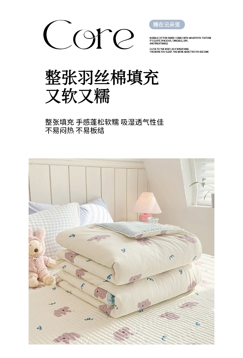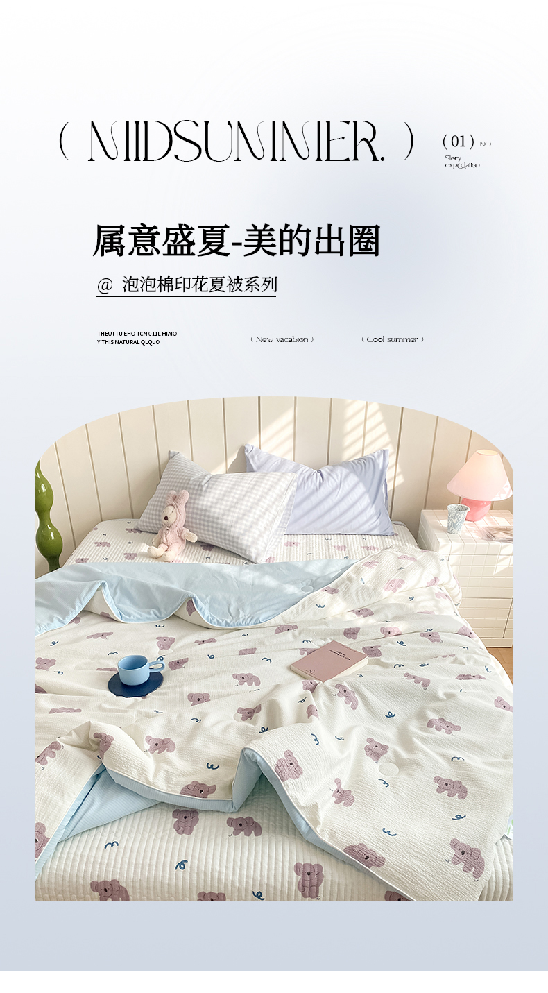 羋多家纺 2024新款麻绳印花小米棉夏被云感泡芙棉被子泡泡纱单夏被(另有单独床盖)欢乐颂