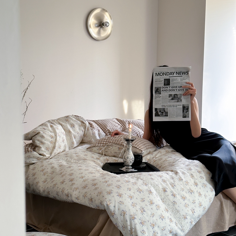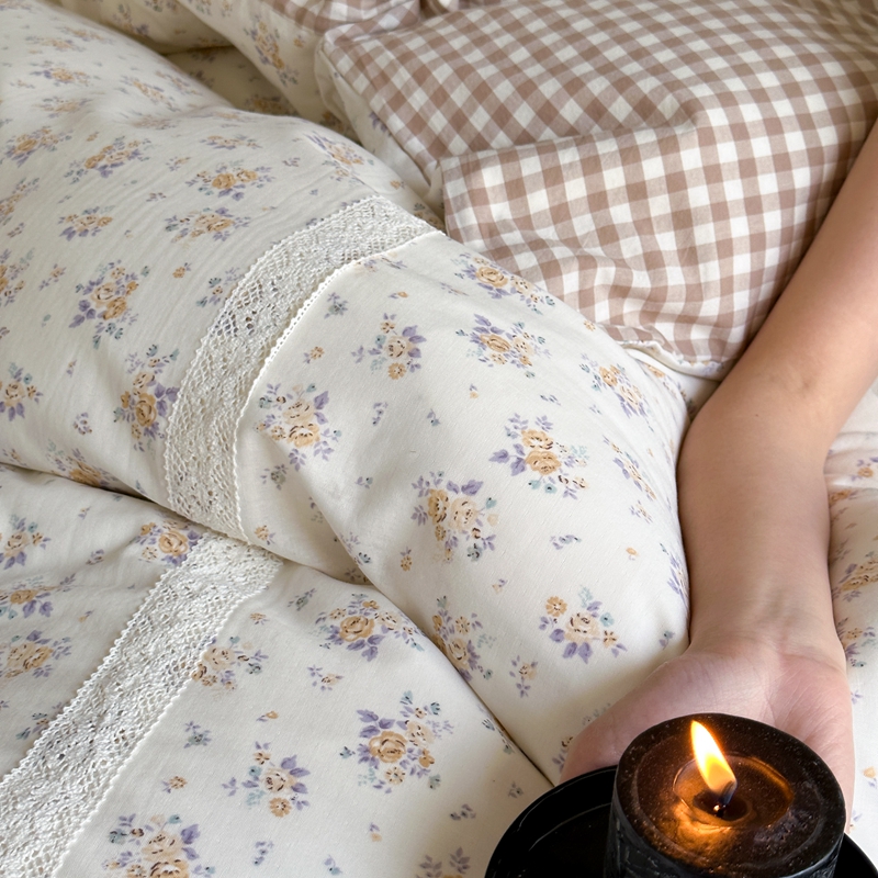 旷野 2024双层纱碎花蕾丝拼接款四件套--柏林花事 柏林花事-奶咖