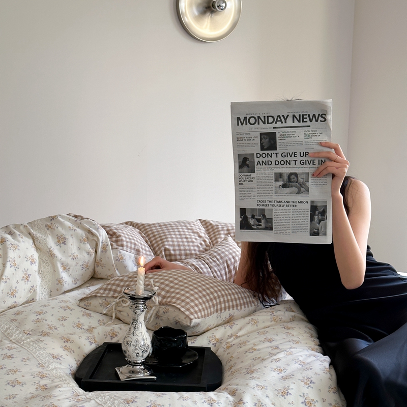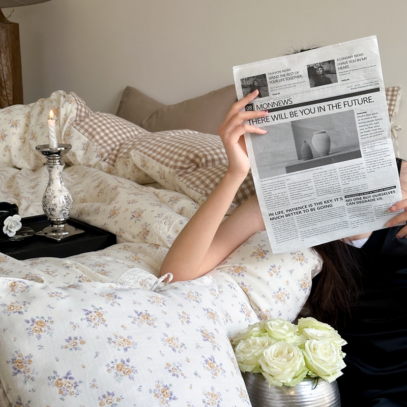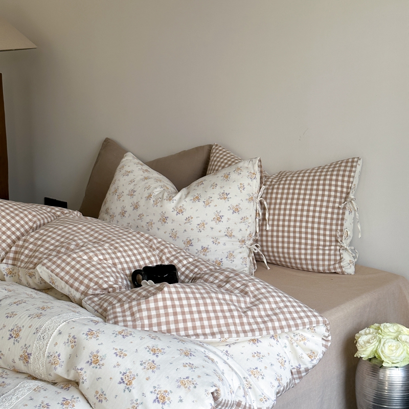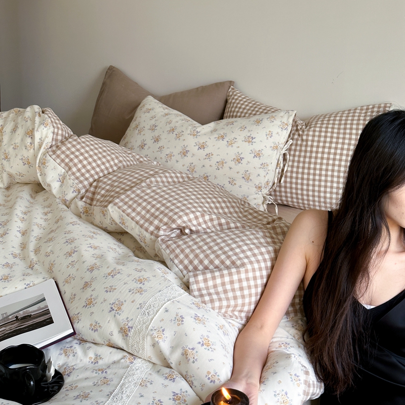 商品名称:旷野 2024双层纱碎花蕾丝拼接款四件套--柏林花事 柏林花事-奶咖