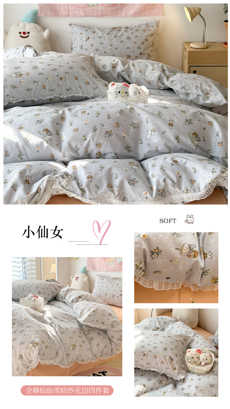 昔可家纺 2024新款全棉仙仙雪纺纱花边四件套 小仙女