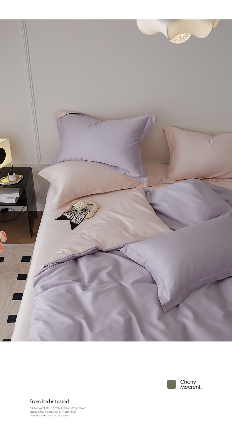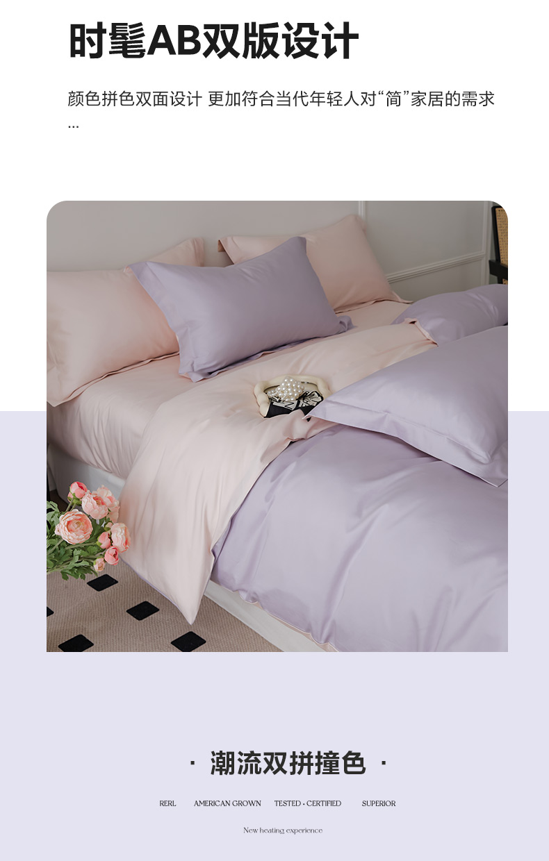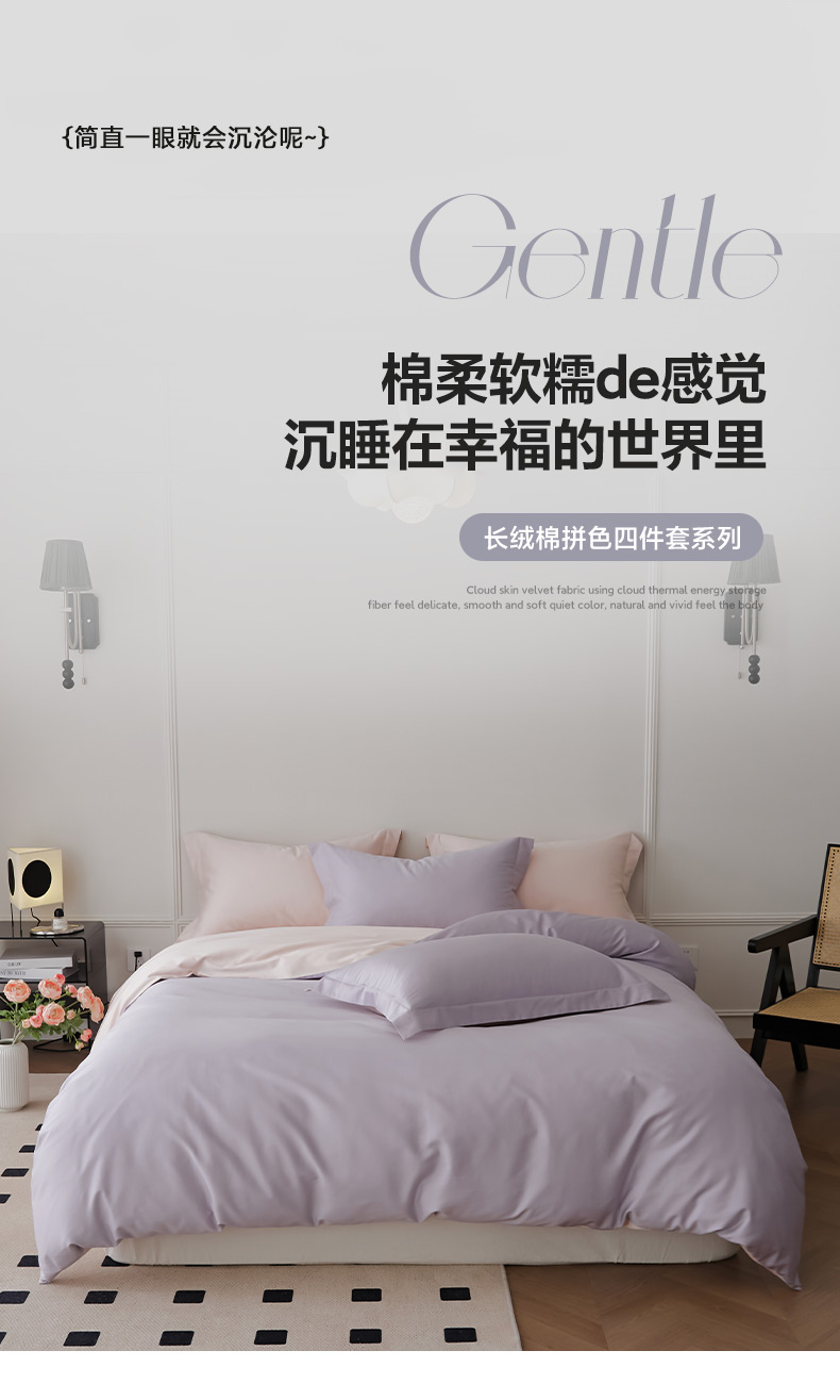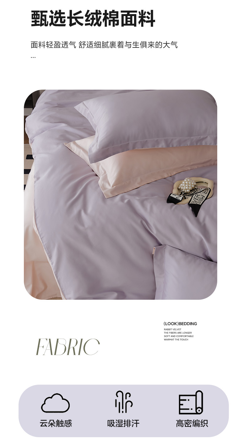 当前位置: 91家纺网 > 商品网购 > 床品套件 > 四件套 > 长绒棉四件套 > 新款绵柔软糯长绒棉拼色四件套 鸢尾紫