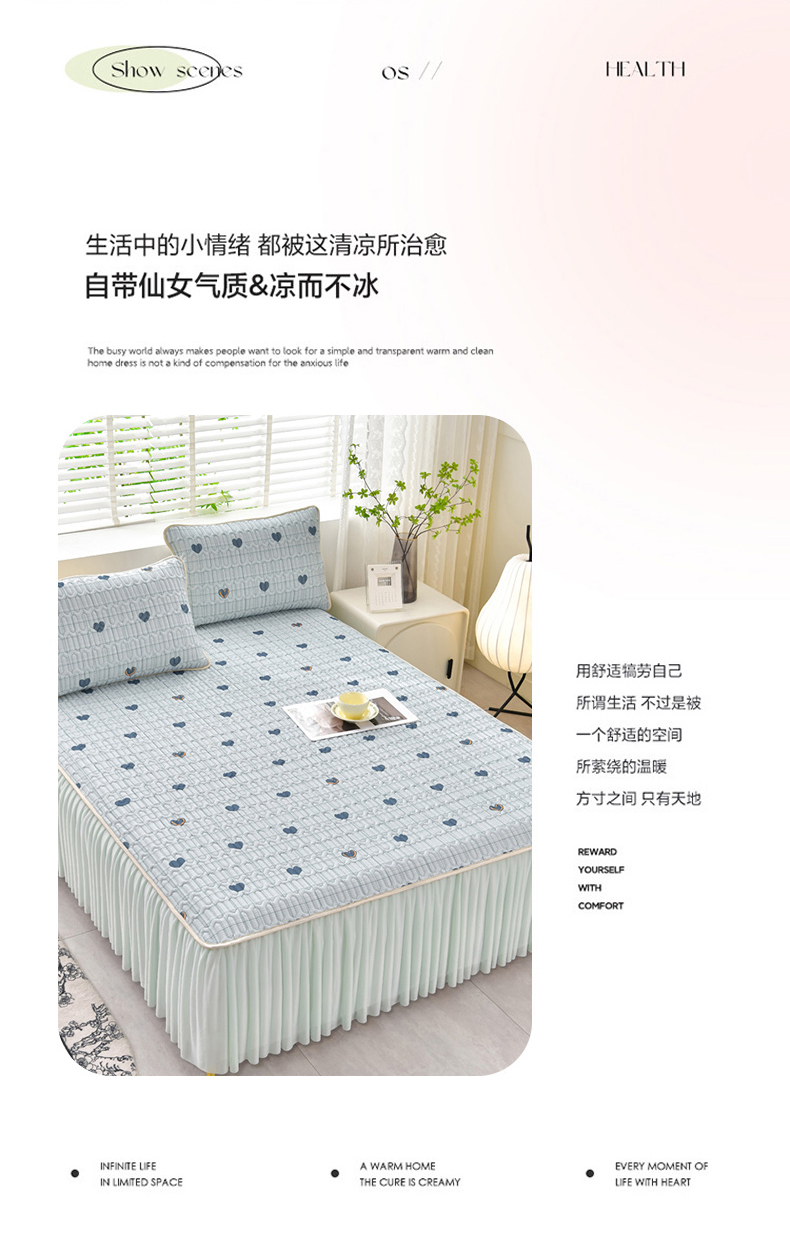 (总)诺梵家纺 2026新款 pe 乙纶立体提花凉豆豆席凉席床裙款【控价1.5米119 ;1.8米129;2.0米139】,半夏-灰,半夏-粉,半夏-绿,花蝶相拥-粉,花蝶相拥-蓝,花蝶相拥-绿,金钱树-灰,金钱树深咖,时尚空间-粉,时尚空间-蓝,幸运草-粉,幸运草-蓝,金钱树-咖