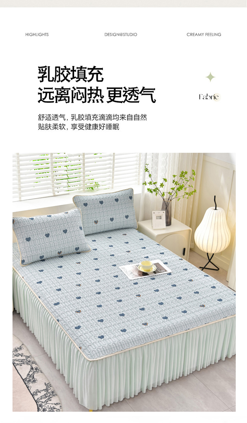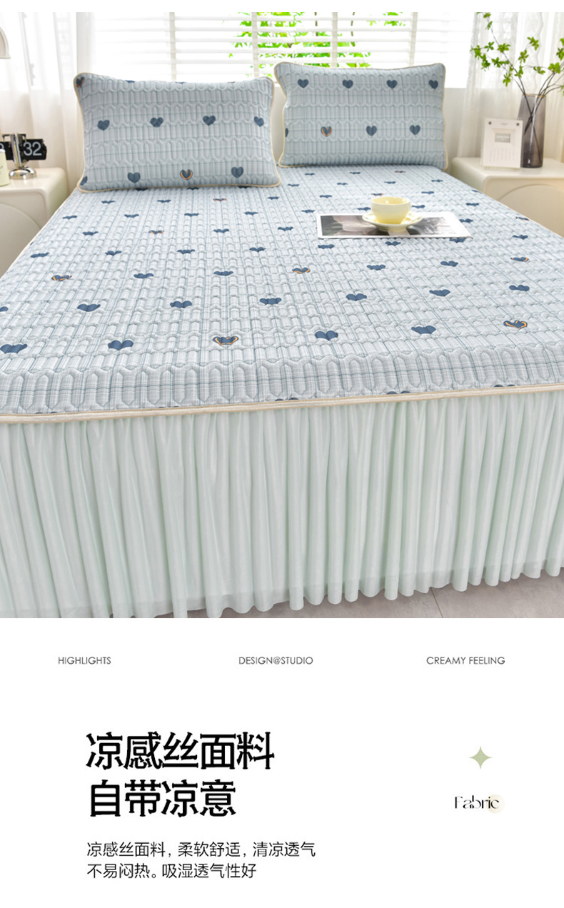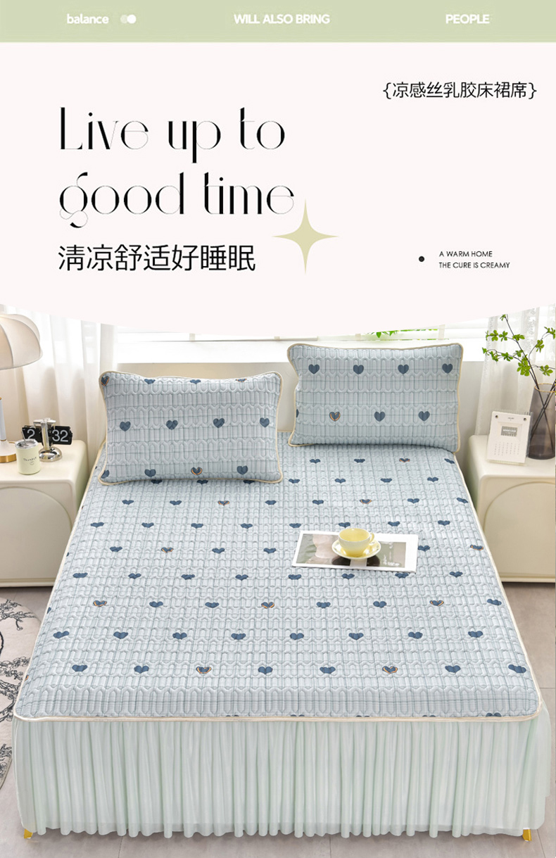 诺梵家纺 2024新款0.5凉感丝乳胶凉席床裙款三件套 怦然心动蓝
