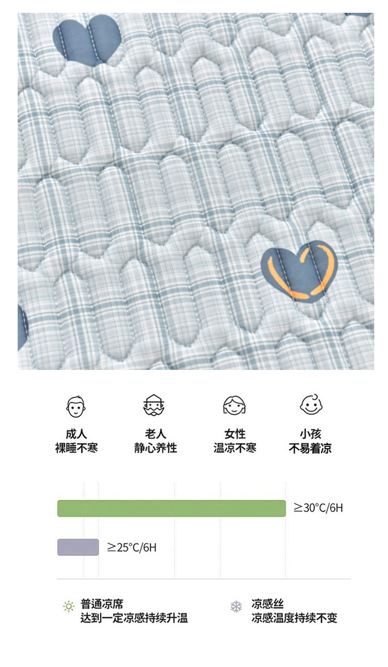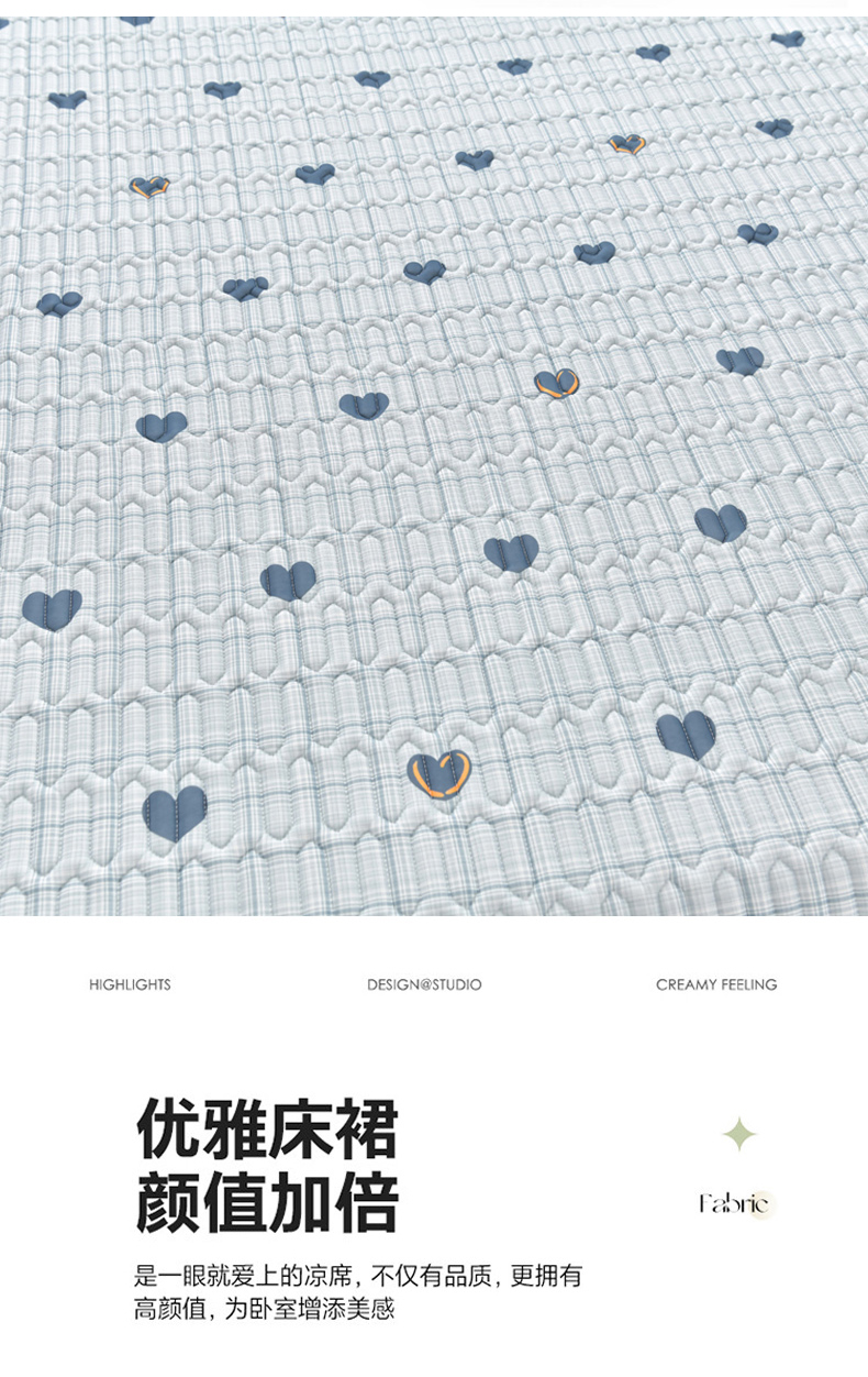 商品名称:诺梵家纺 2024新款0.5凉感丝乳胶凉席床裙款三件套 怦然心动蓝