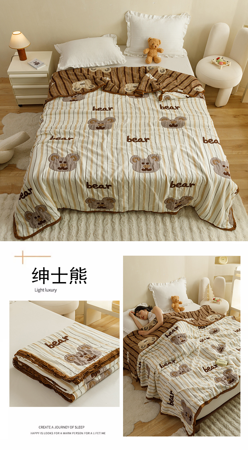 商品名称:麻依 2024新款泡芙被夏季款五层纱布夏被夏凉被 绅士熊
