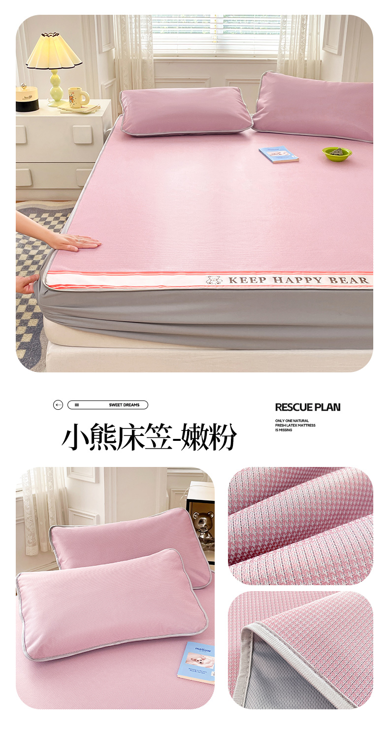 商品名称:福来临家纺 2025新款1800D碳光冰丝席 小熊床笠-嫩粉