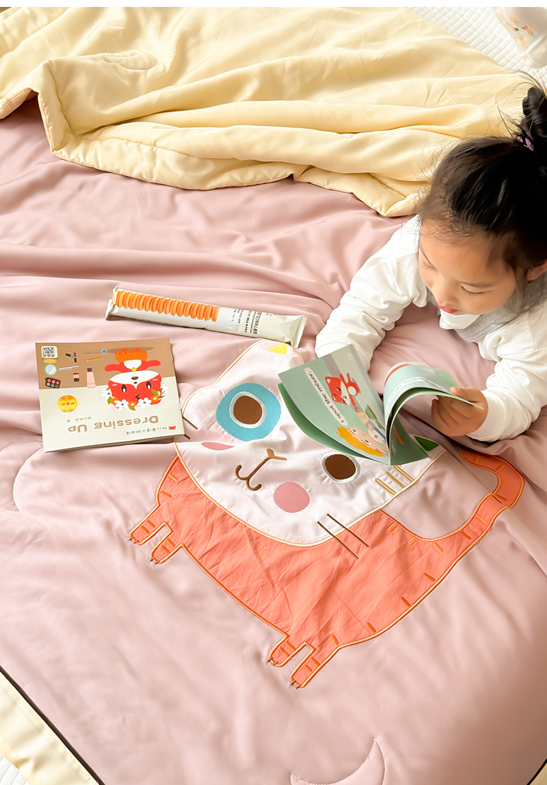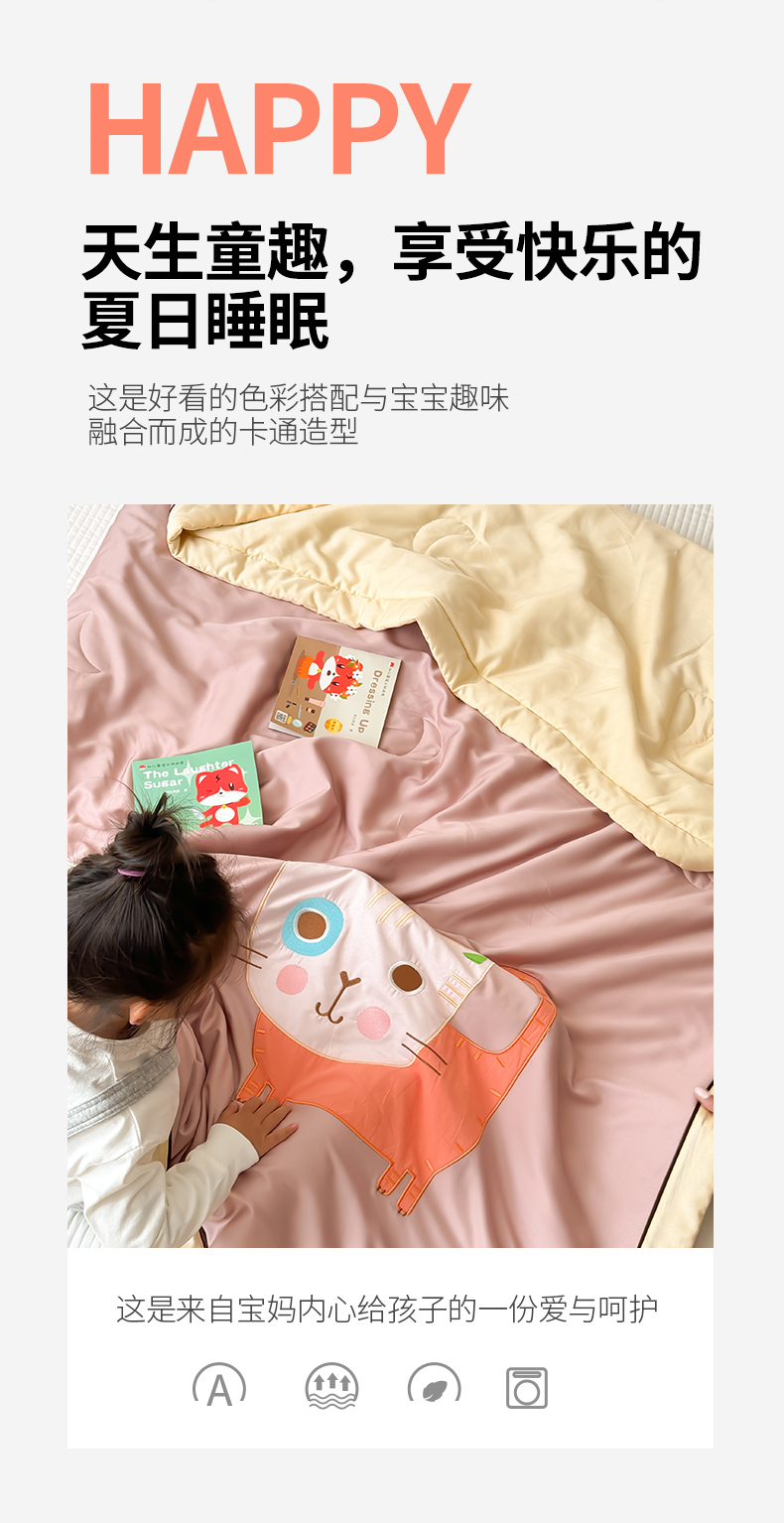 (总)喜多兔儿童家纺 2025新款小惊喜儿童蚕丝蛋白天丝抗菌夏凉被,粉色礼貌小鸭,粉色围裙小兔宝,黄色多彩小狗,黄色画画小猫,灰蓝色活动熊猫,灰蓝色运动小狮子,卡其色勤劳小马,卡其色围兜小熊,绿色萌萌恐龙,绿色微笑小猴