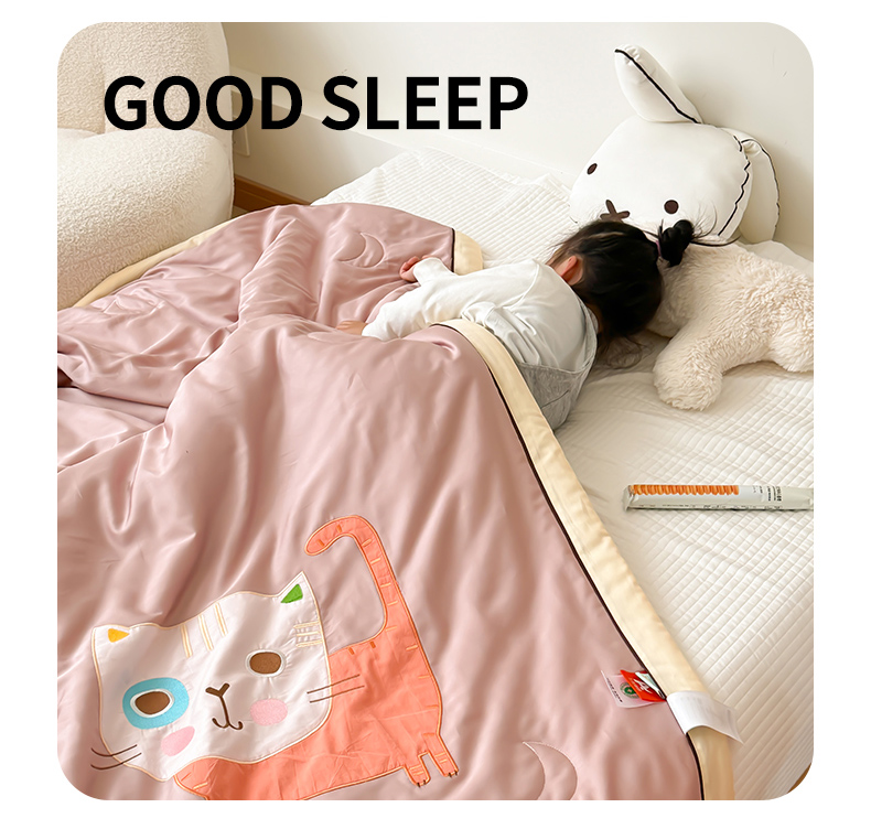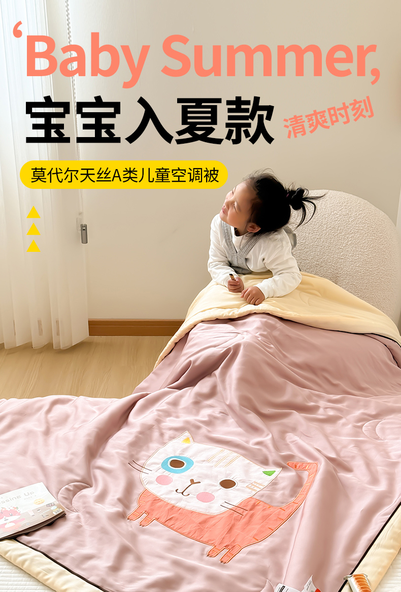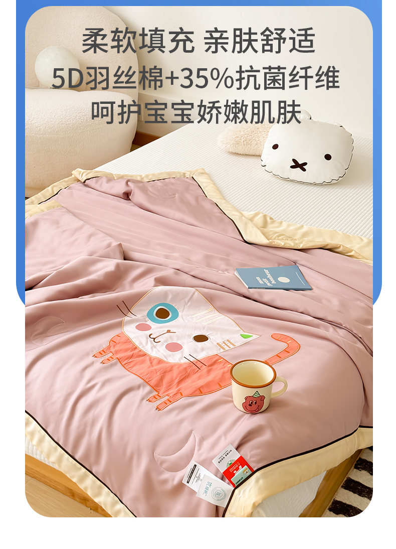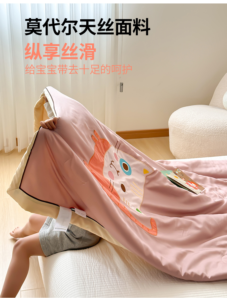 喜多兔儿童家纺 2024新款莫代尔夏被空调被-萌宝宝系列 豆沙色小猫甜甜