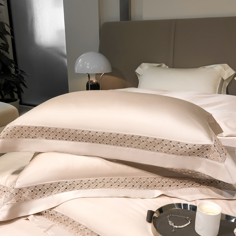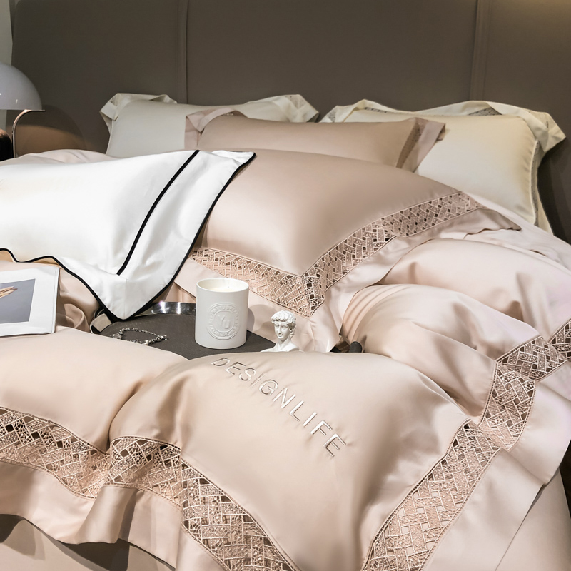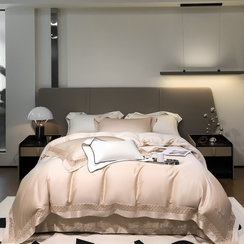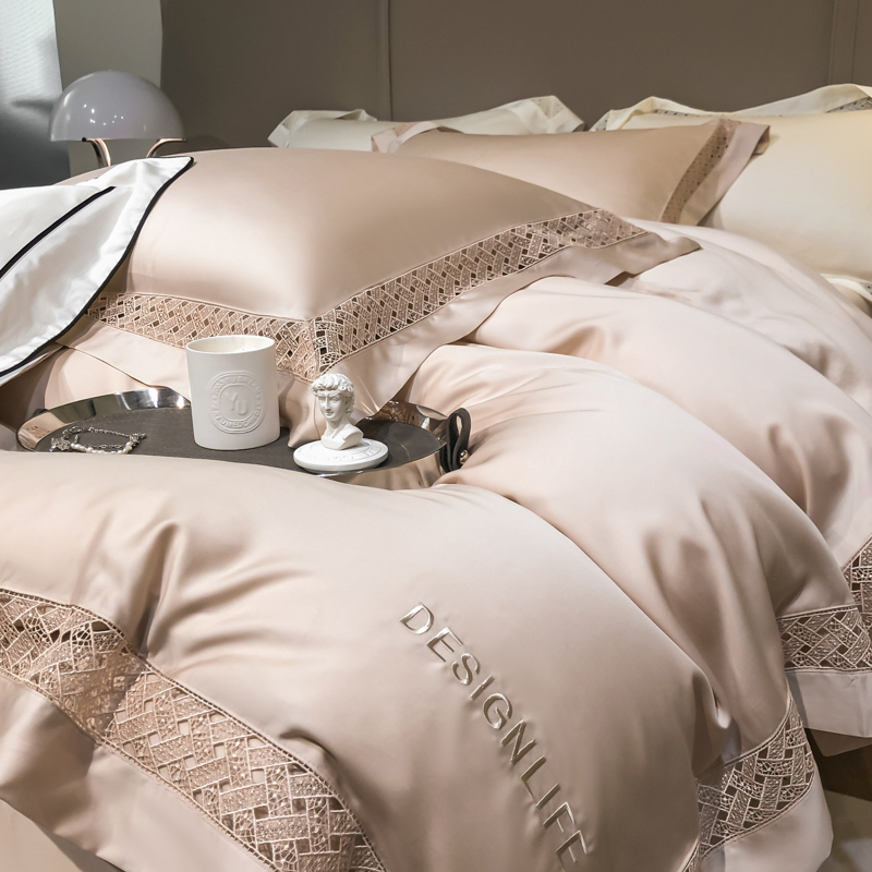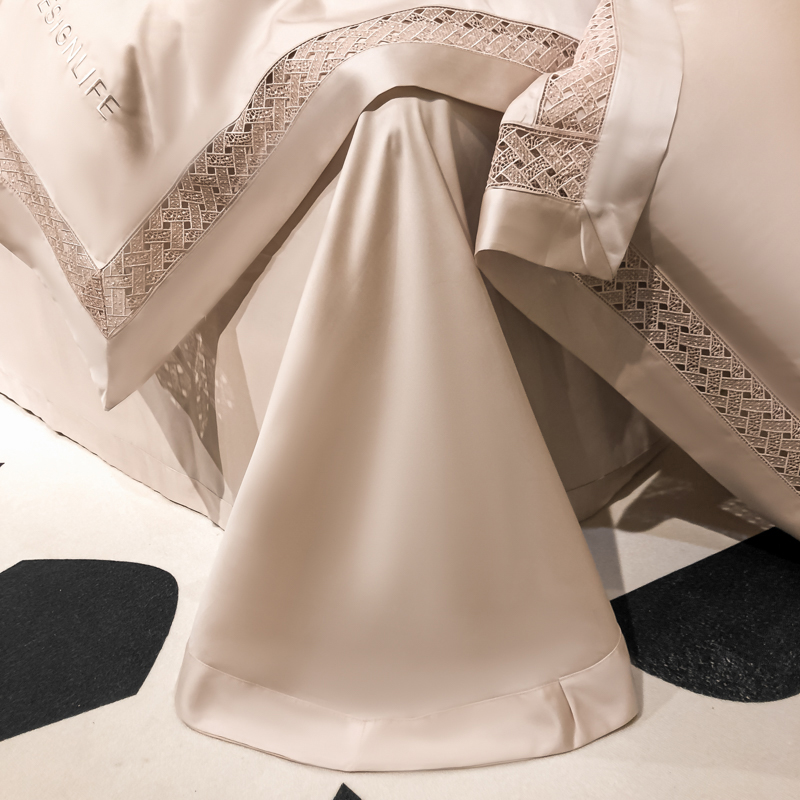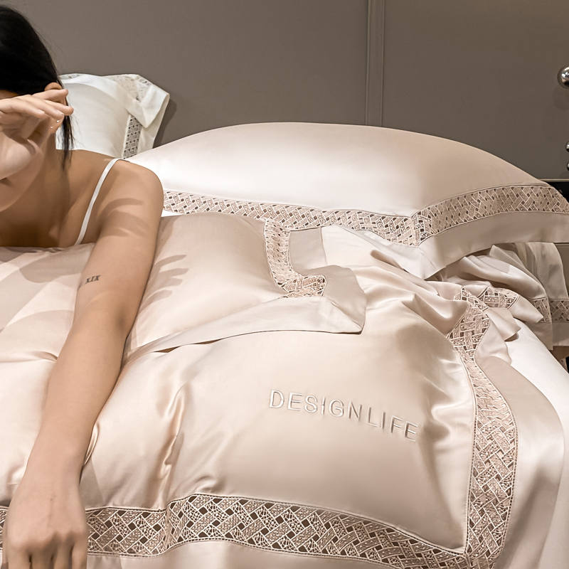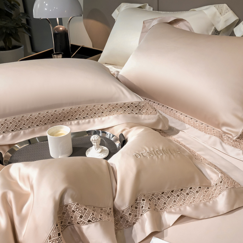 佳汐蓝家纺 2024春夏新款60支进口奥地利兰精天丝宽边镂空花边四件套 丝悦-气质米