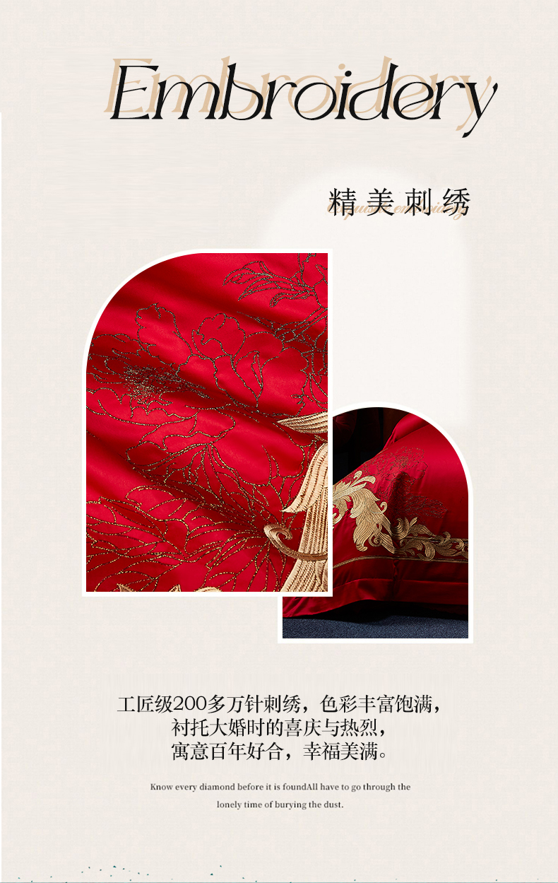 当前位置: 91家纺网 > 商品网购 > 床品套件 > 四件套 > 婚庆四件套 > 高大尚婚庆馆 2025新款60s长绒棉轻奢(床裙款)婚庆四件套 牡丹亭-金