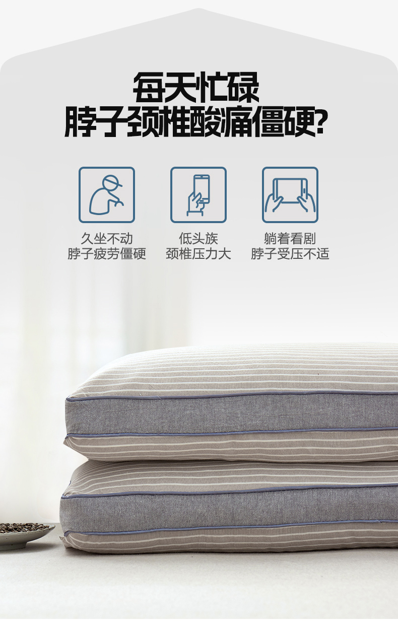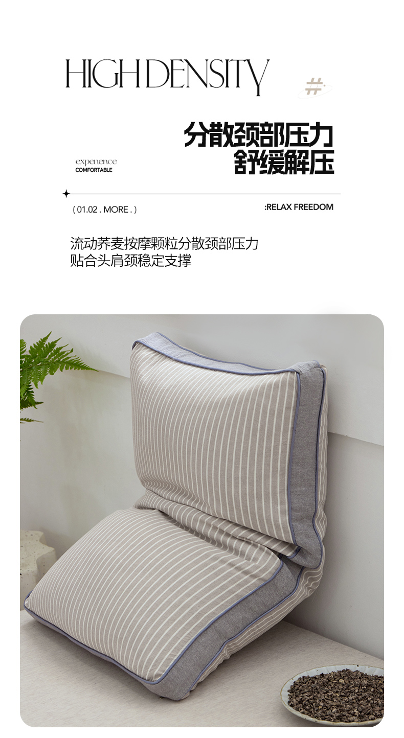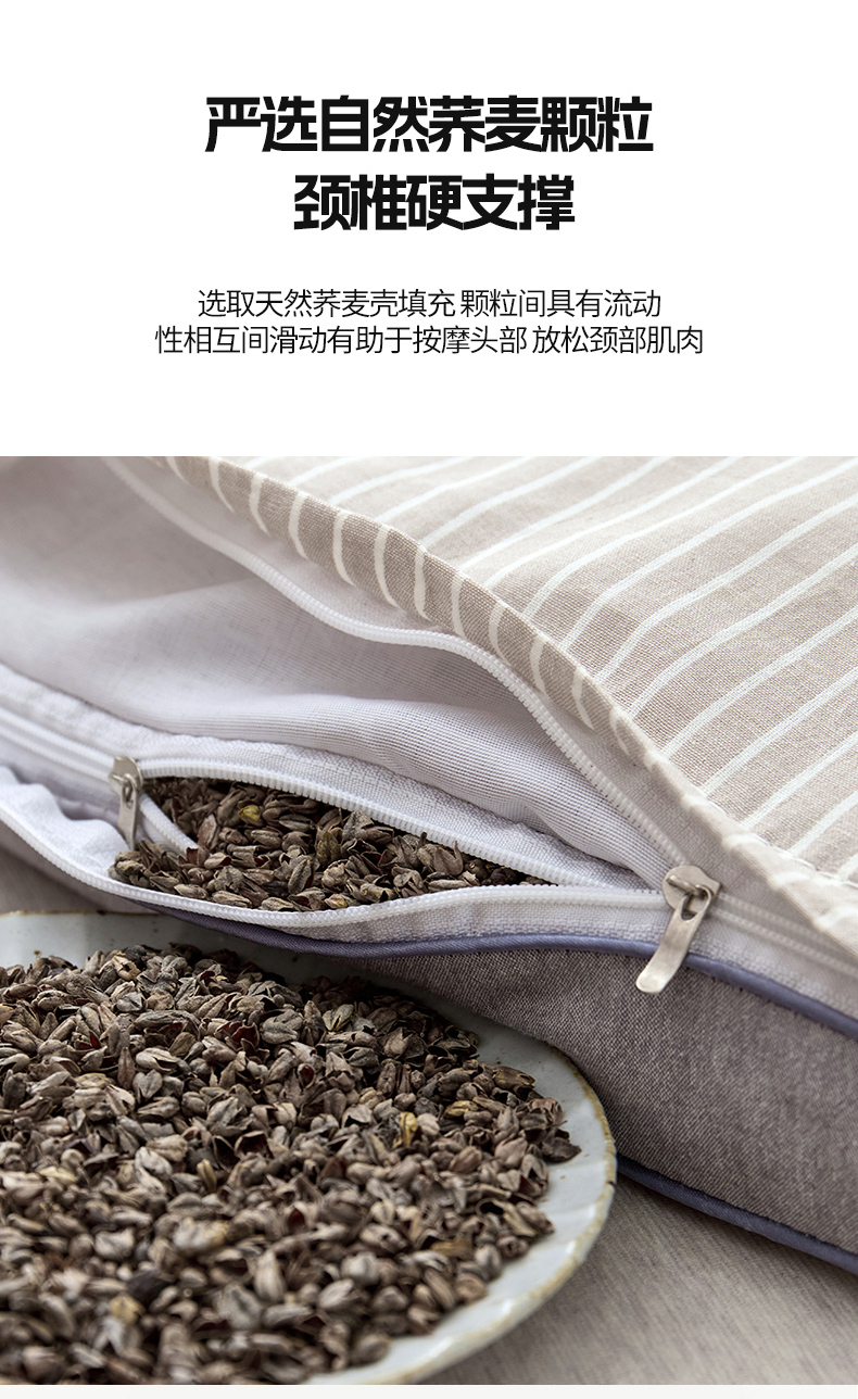 田园条纹系列草本荞麦枕-条纹灰 40*70cm/只