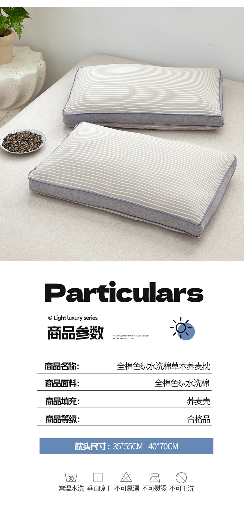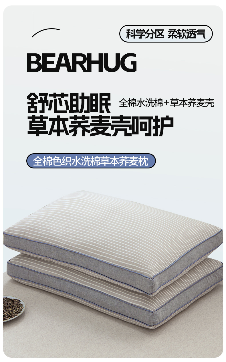 商品名称:(总)梦叶草 2024新款全棉色织水洗棉条纹系列草本荞麦枕