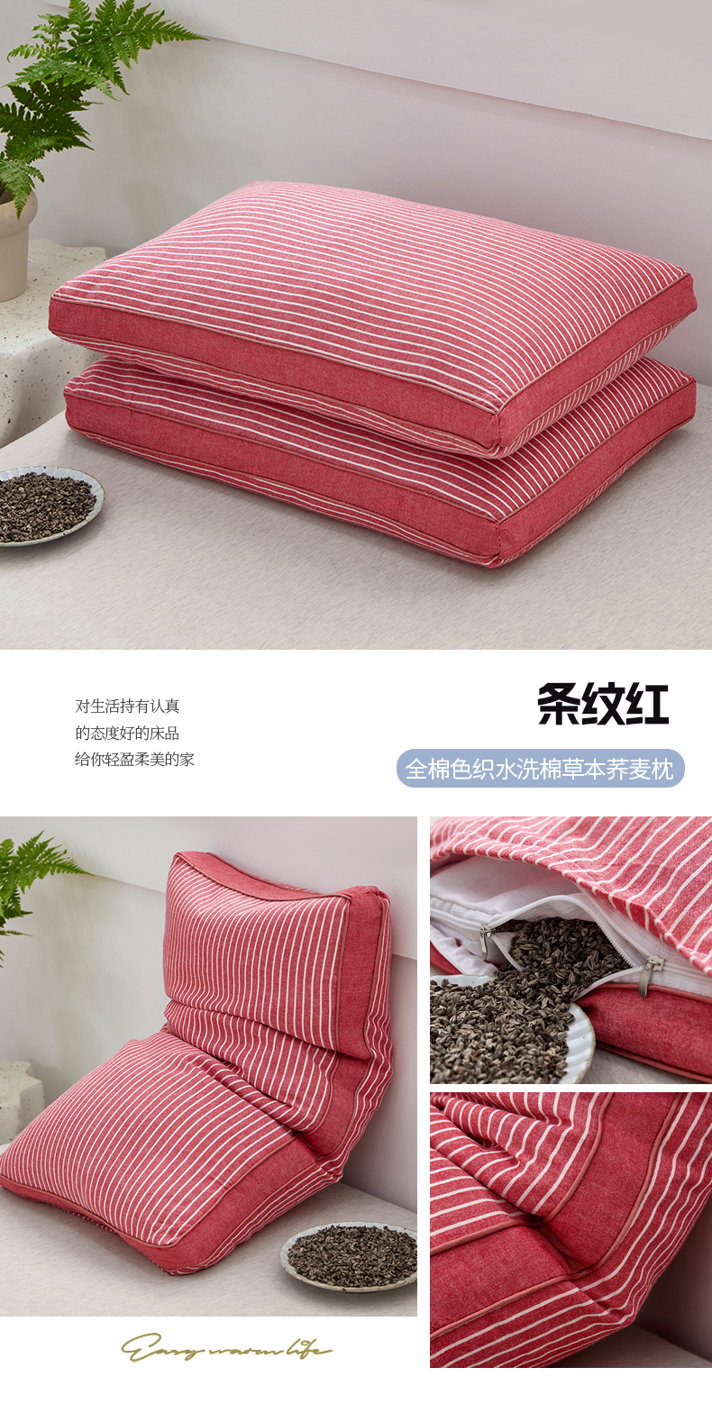 田园条纹系列草本荞麦枕-条纹红40*70cm/只