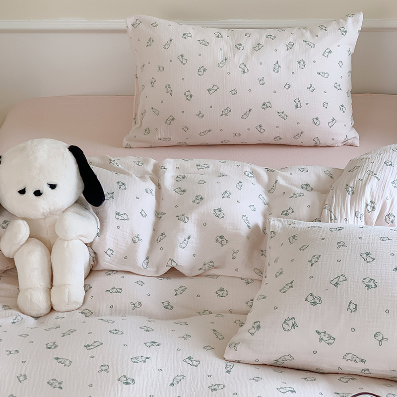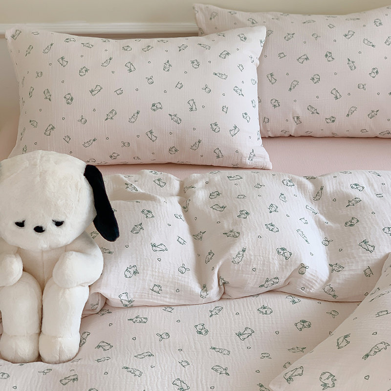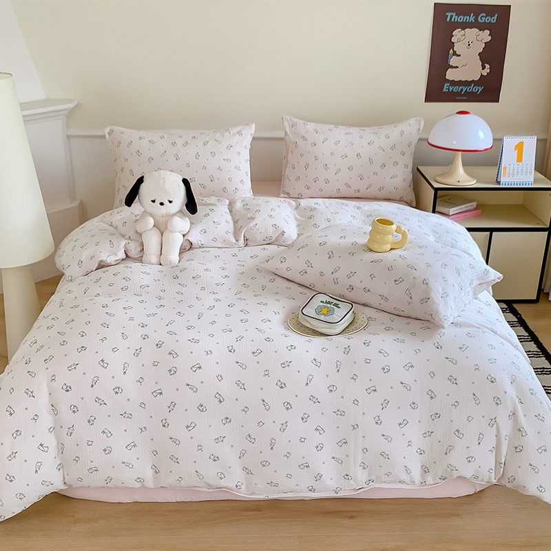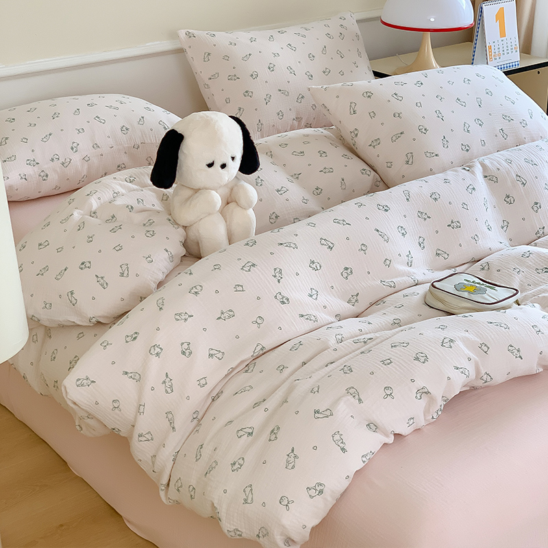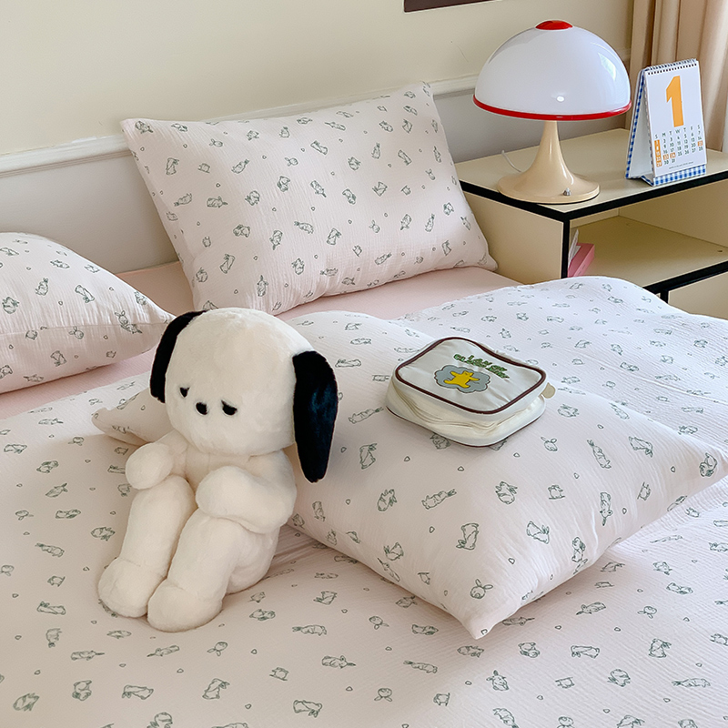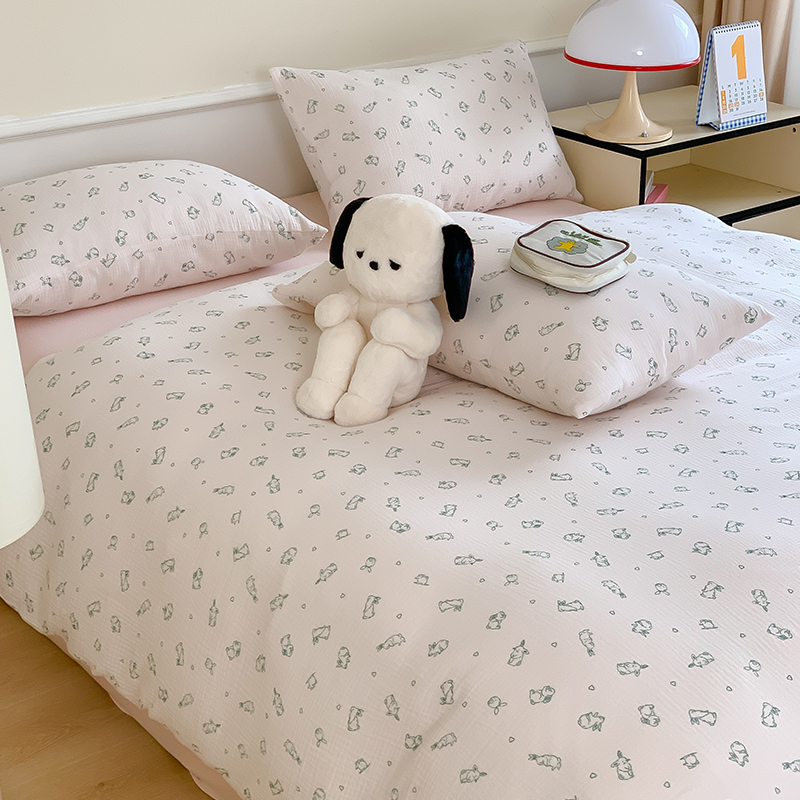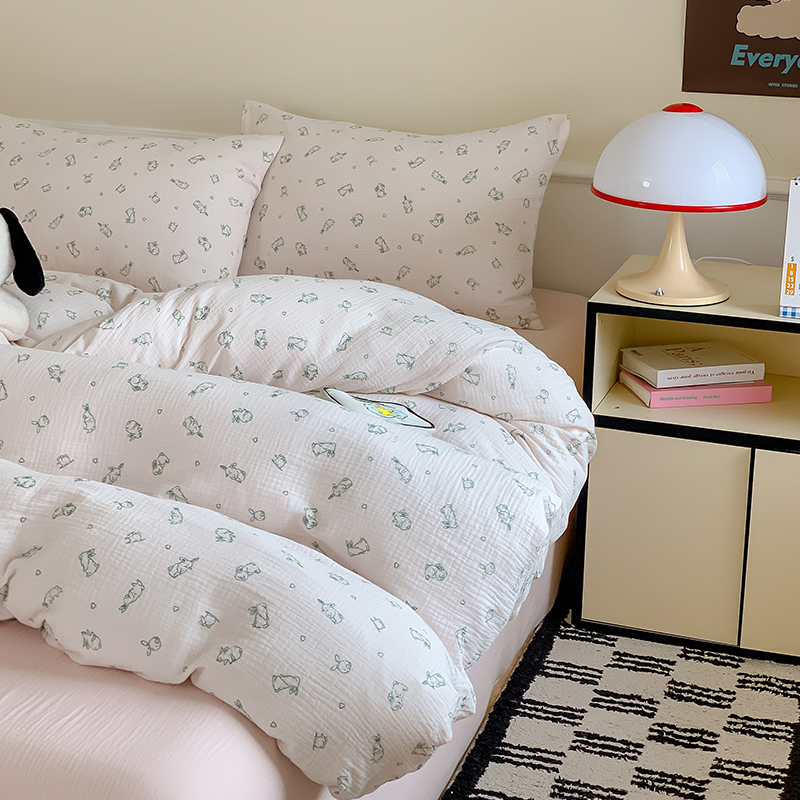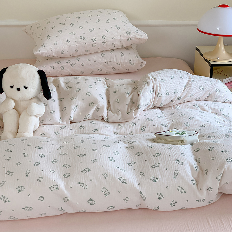 萝莉家纺2025新款全棉双层皱皱纱四件套 小粉兔