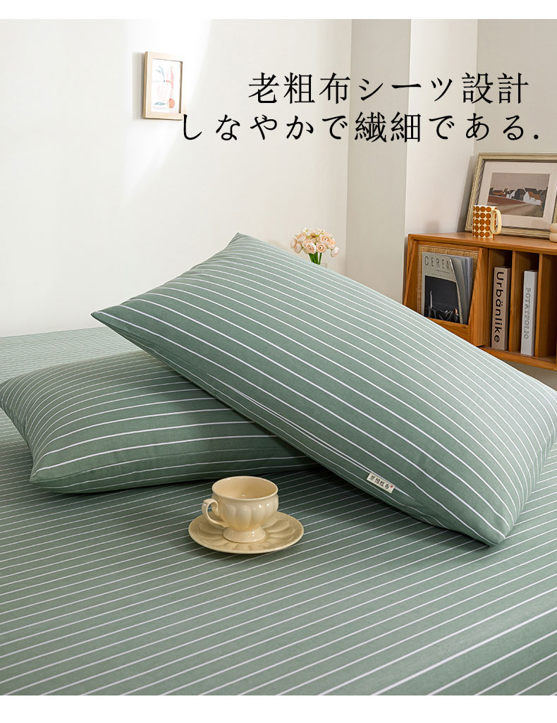 鸣升 新款舒适透气100%全棉老粗布枕套 细川(绿)