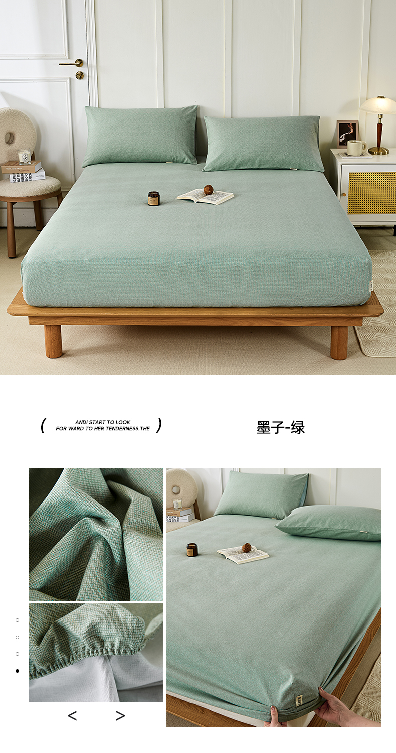 • 91家纺网 家纺一手货源 找家纺 鸣升 新款舒适透气全棉老粗布床笠 墨子(绿)