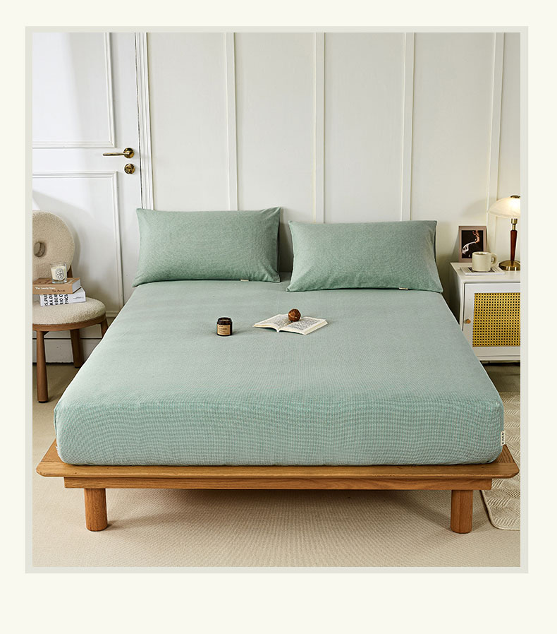 鸣升 新款舒适透气全棉老粗布床笠 墨子(绿)