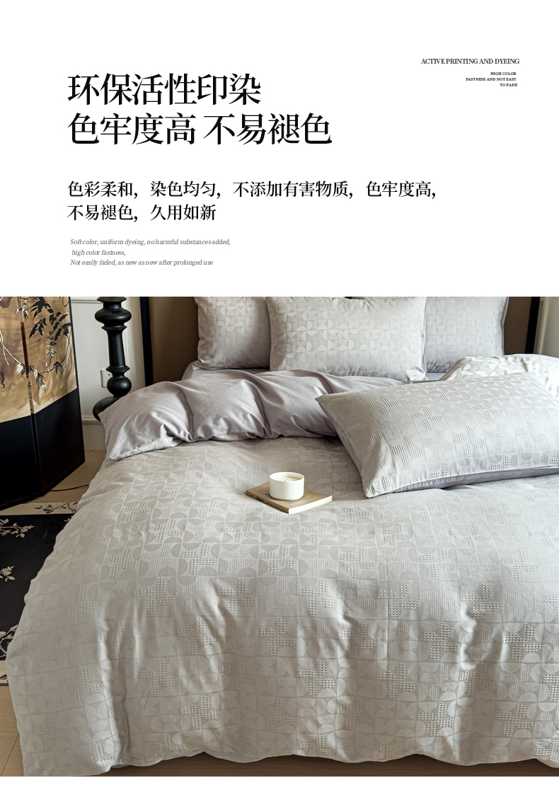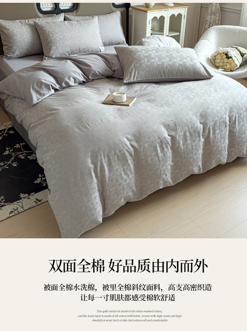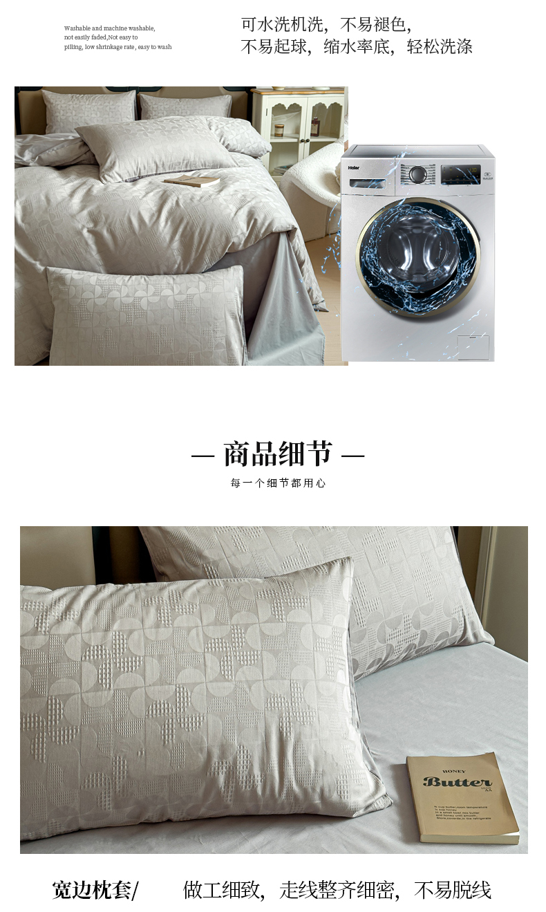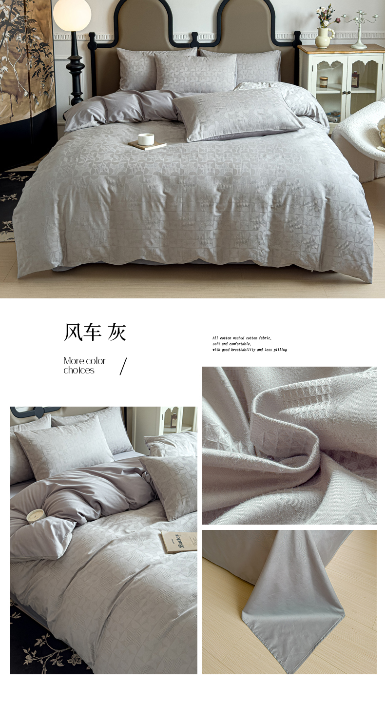 商品名称:金丝鸟家纺 2024新款棉水洗棉纯色提花四件套 风车 灰