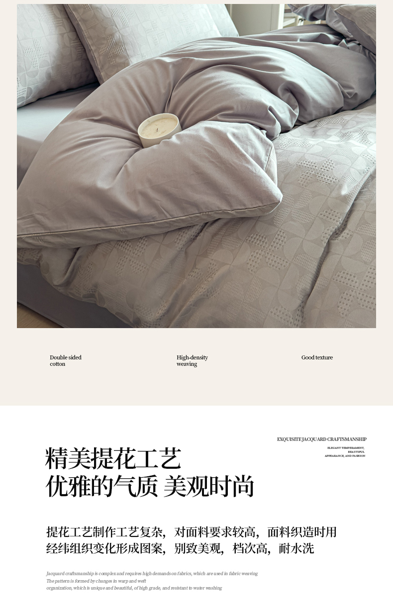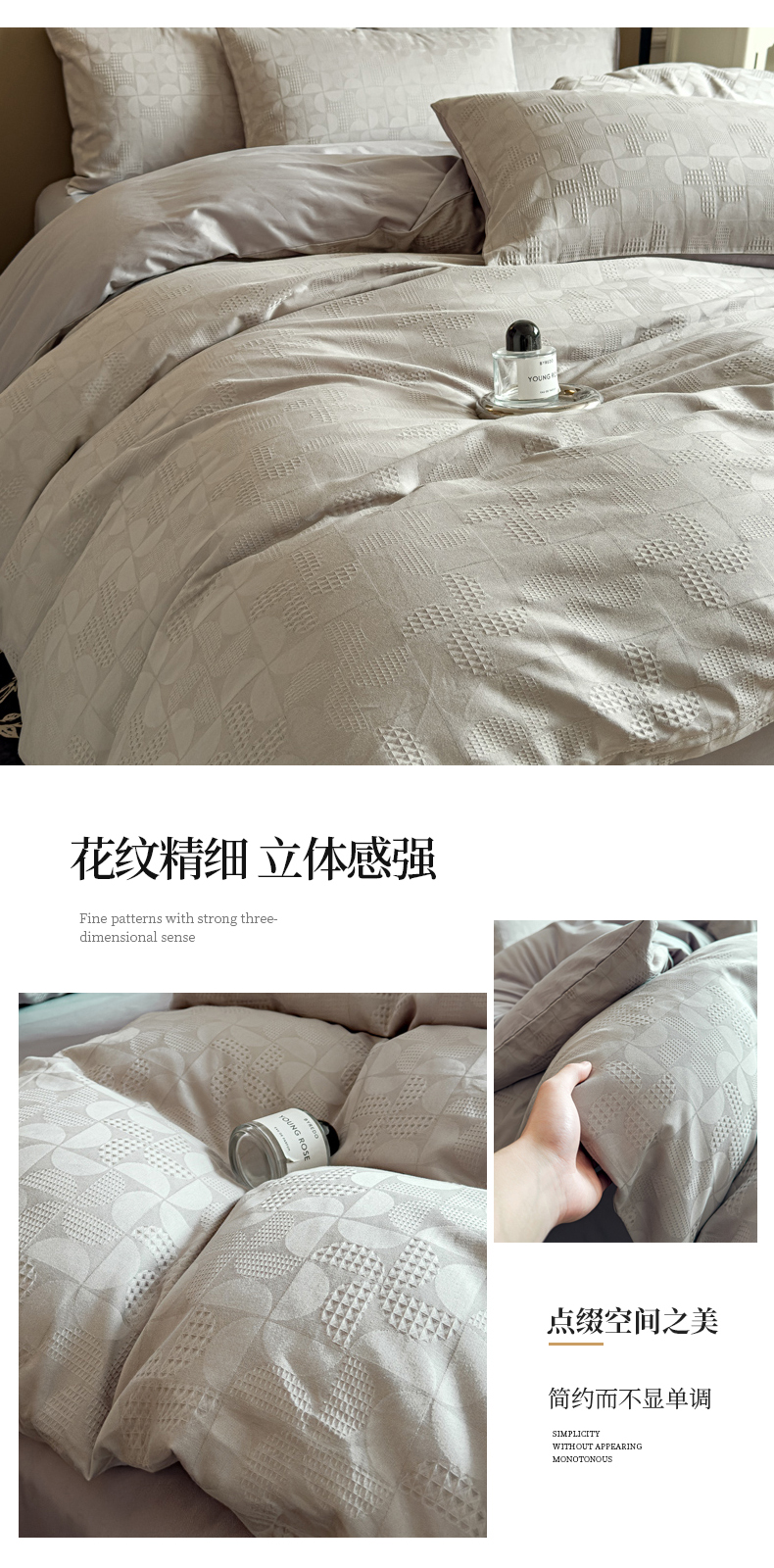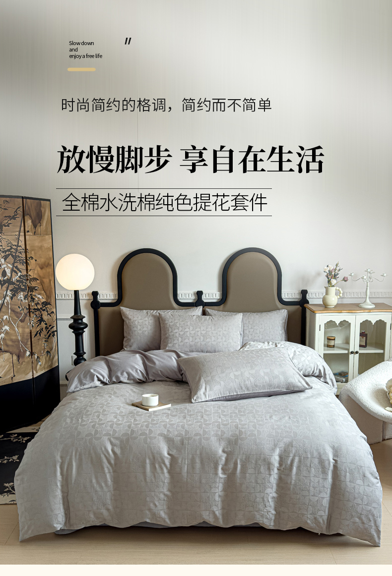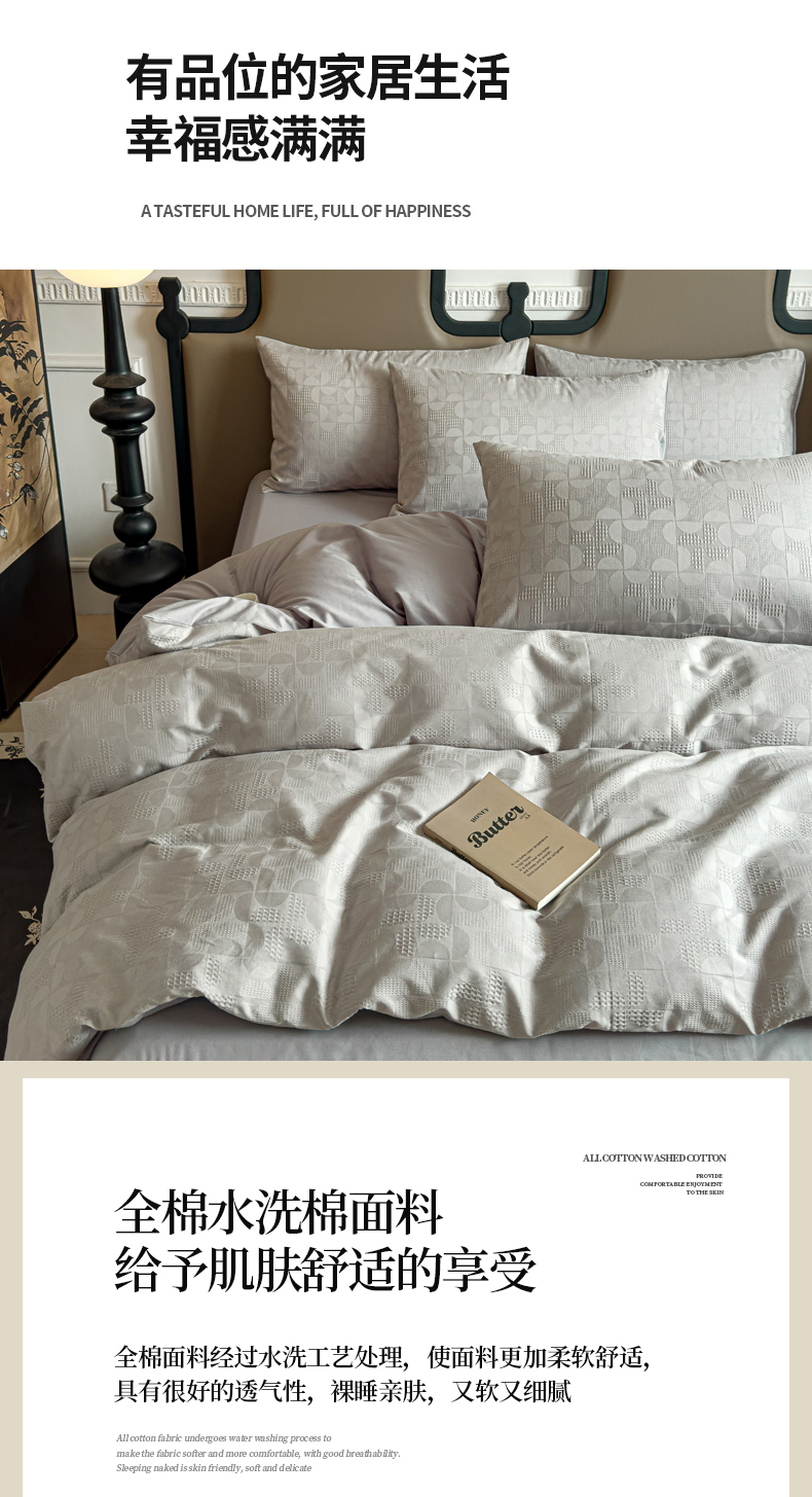 商品名称:金丝鸟家纺 2024新款棉水洗棉纯色提花四件套 风车 灰
