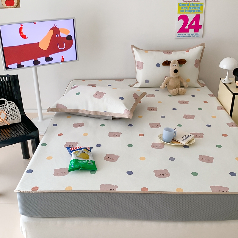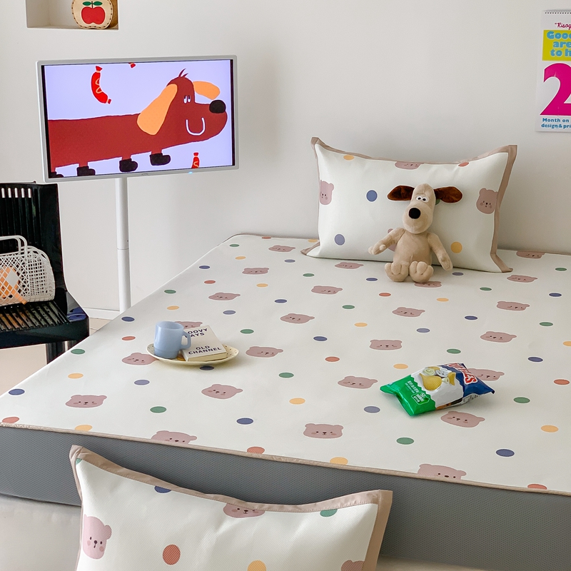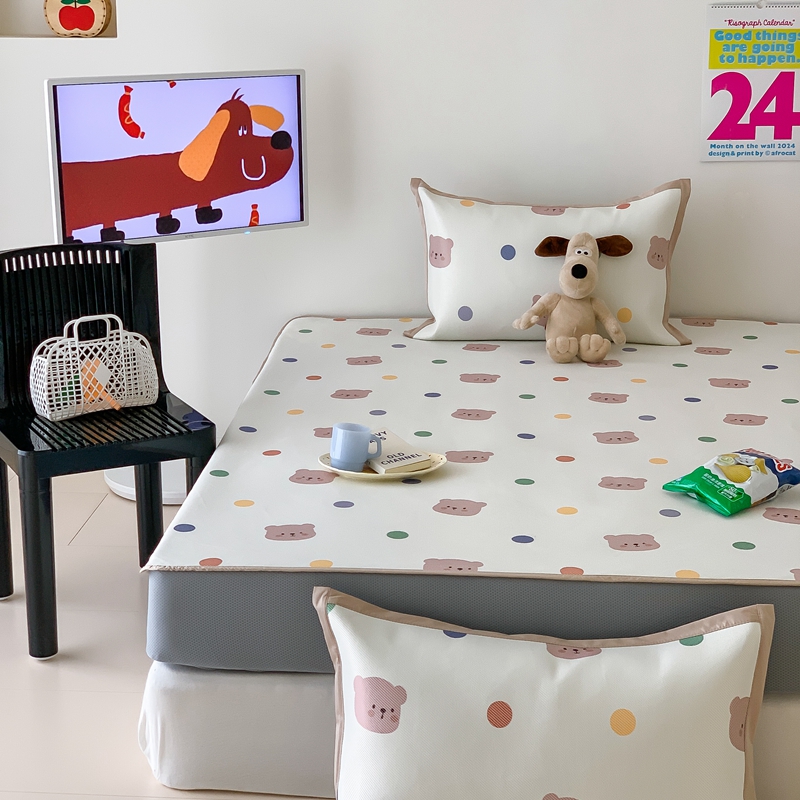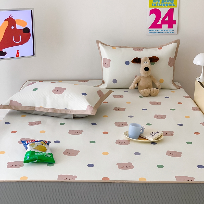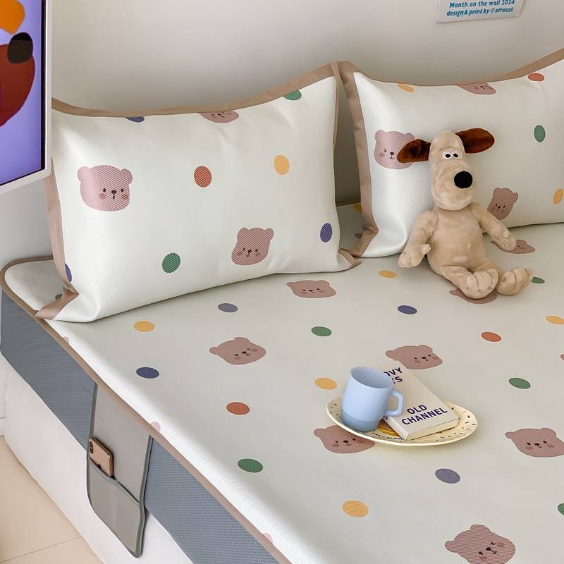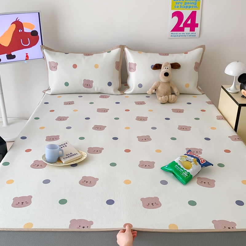 昔可家纺 2024新款冰藤席床笠款--卡通系列 彩色波点熊