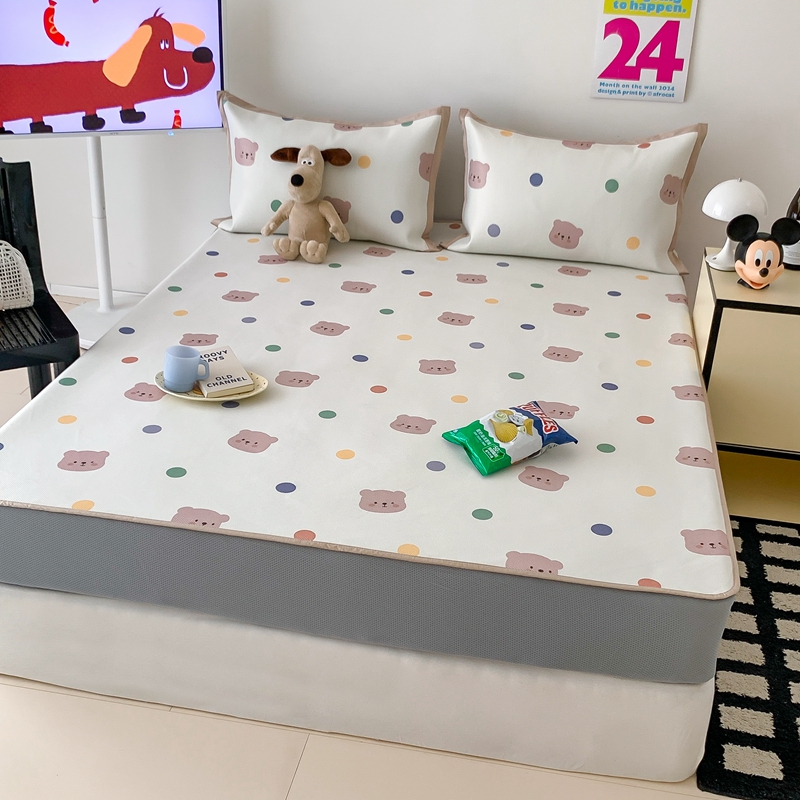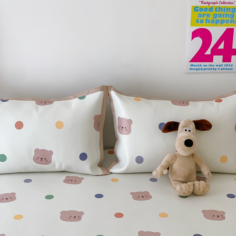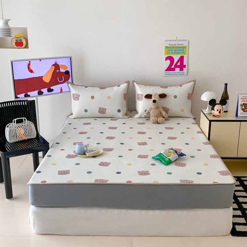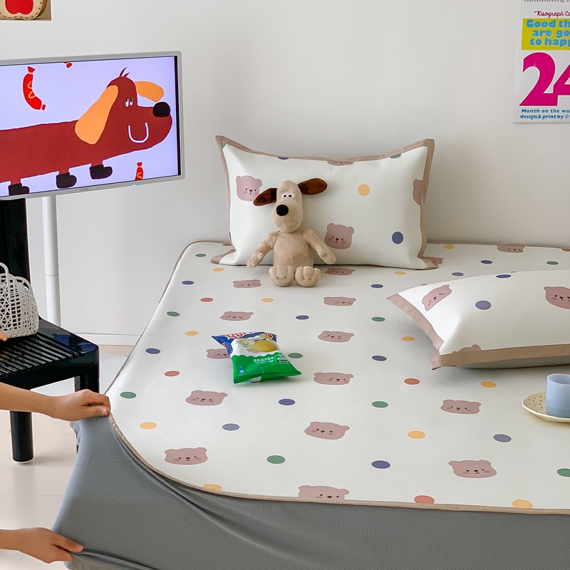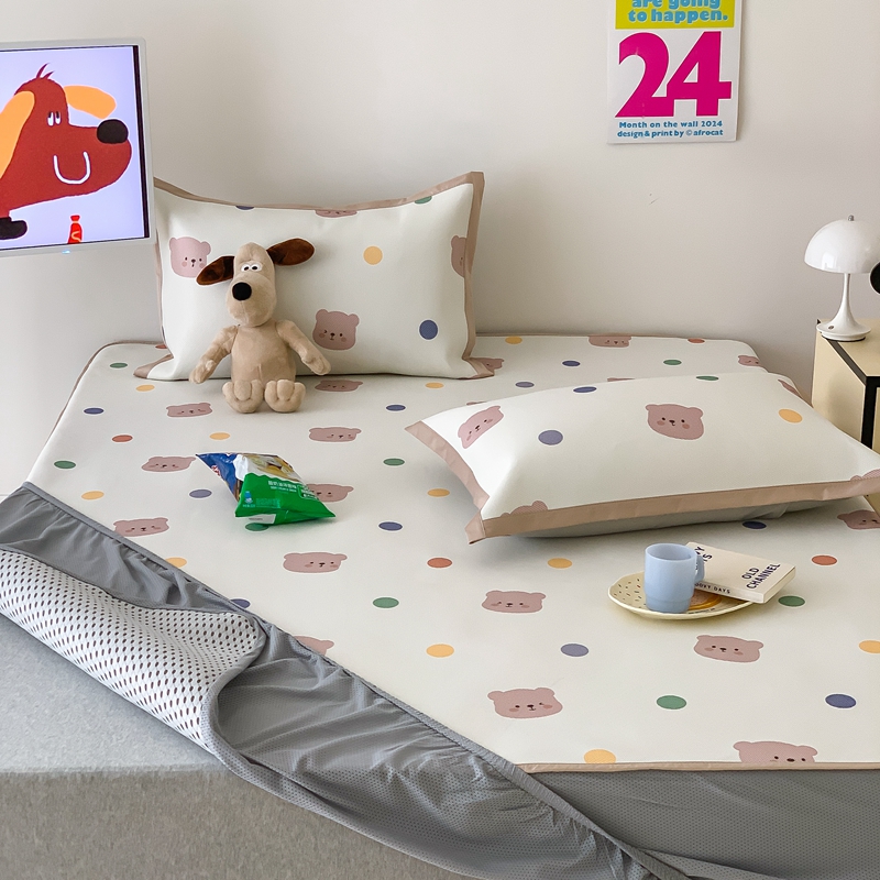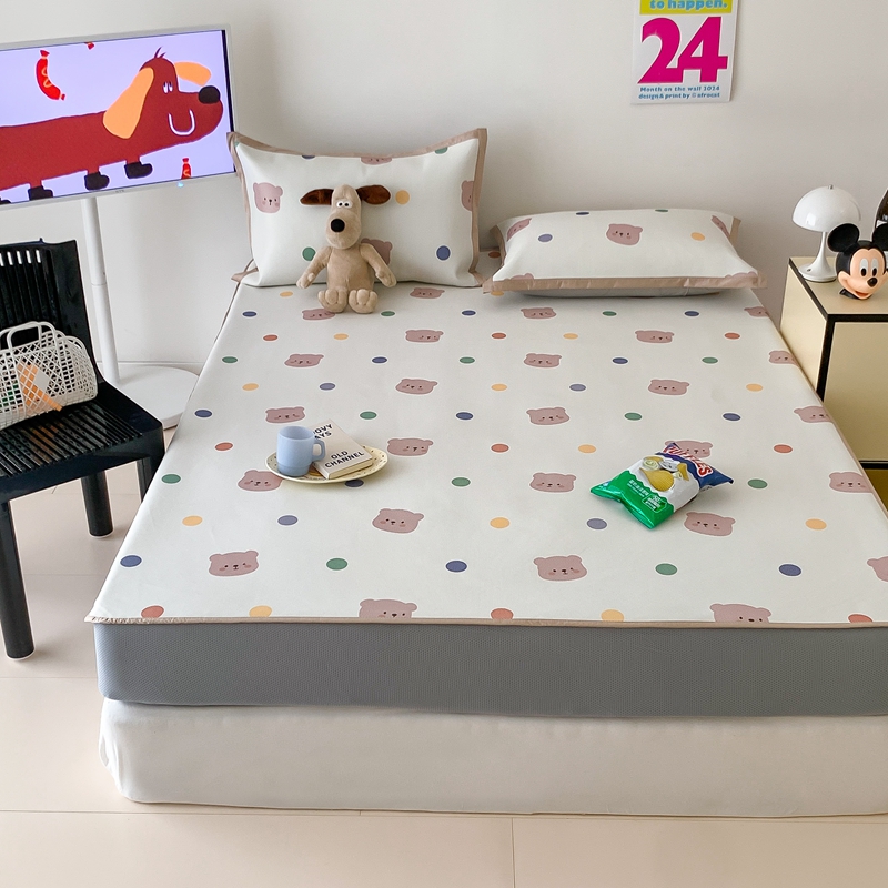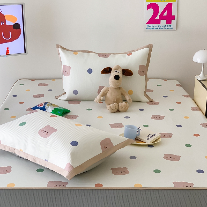 昔可家纺 2024新款冰藤席床笠款--卡通系列 彩色波点熊