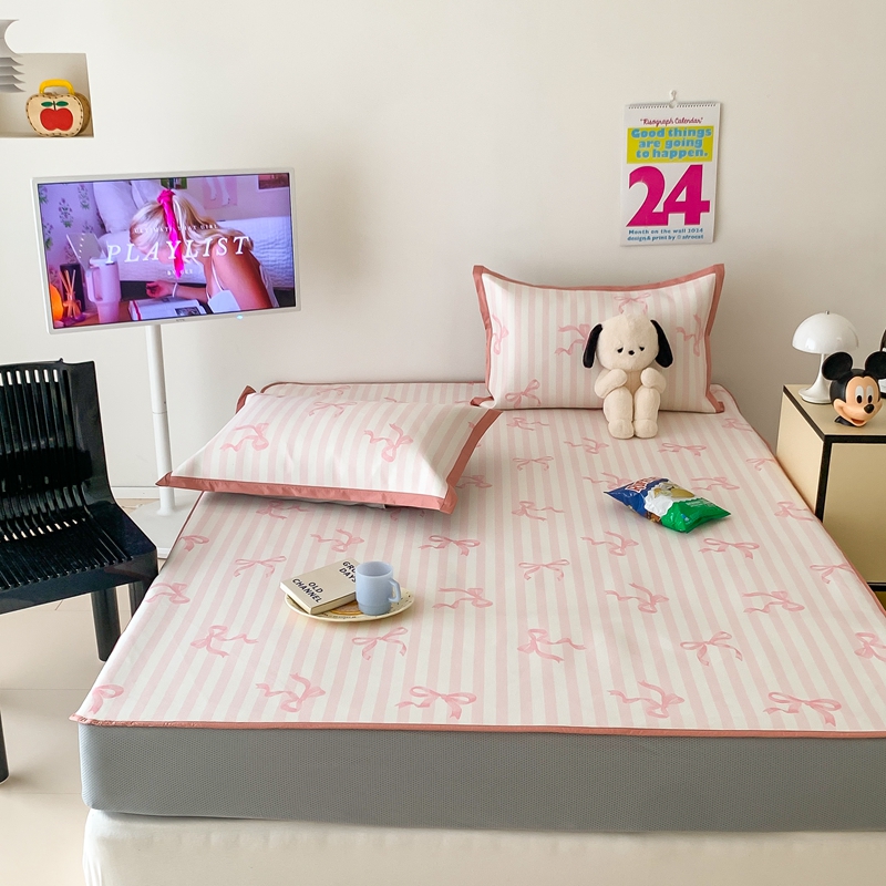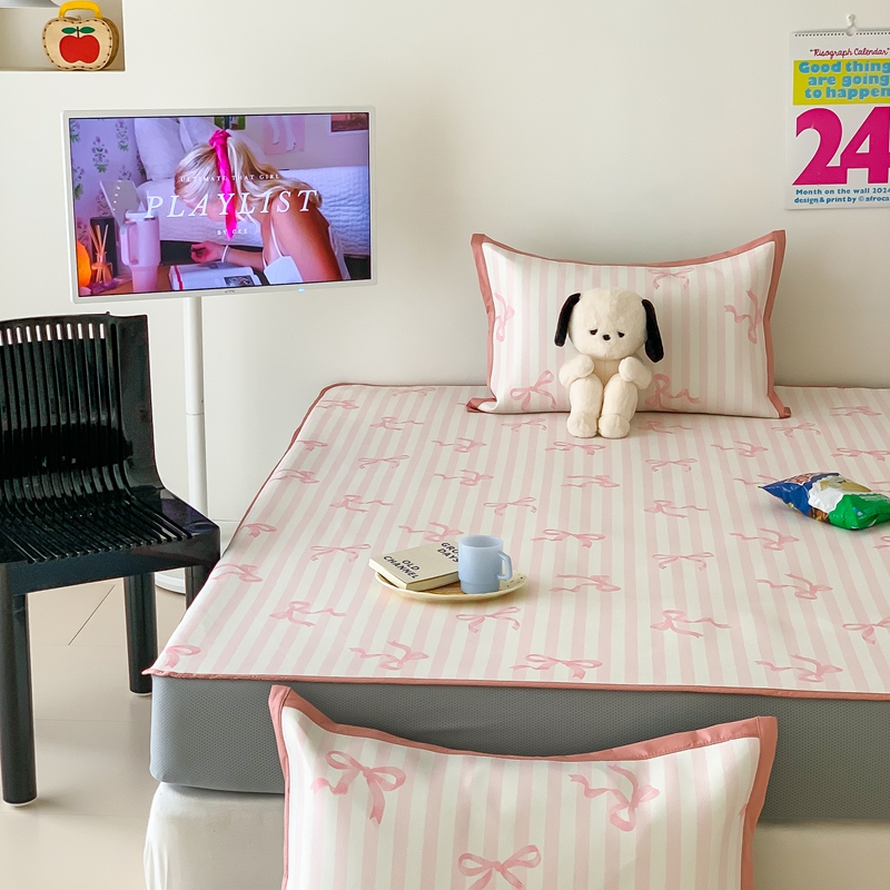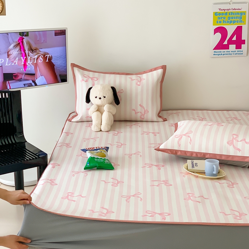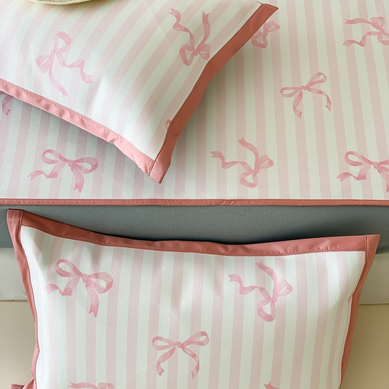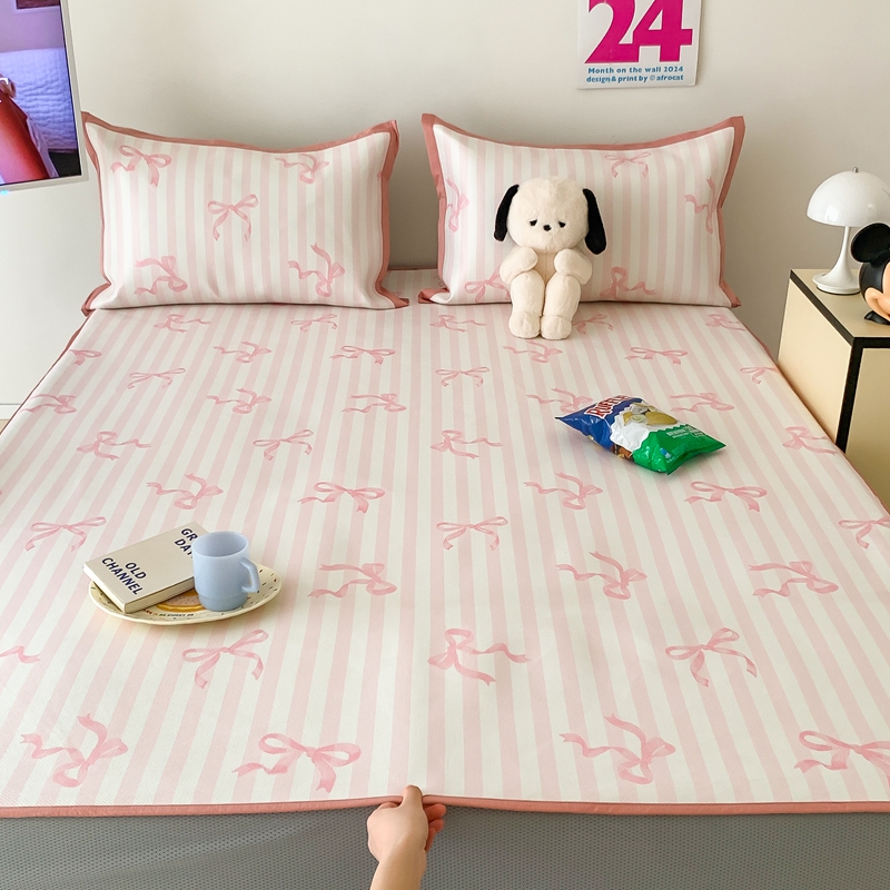 昔可家纺 2024新款冰藤席床笠款--卡通系列 条纹丝带蝴蝶结