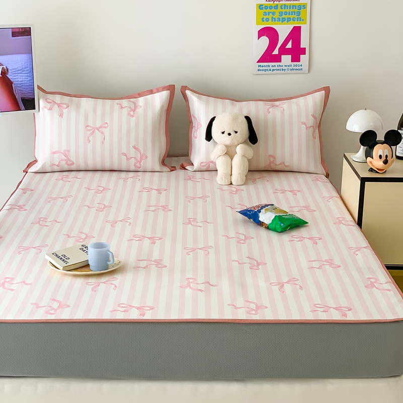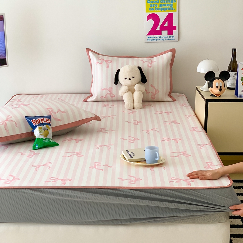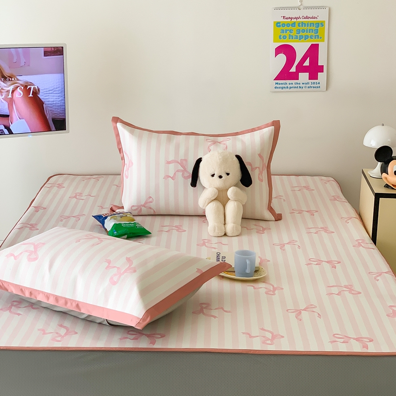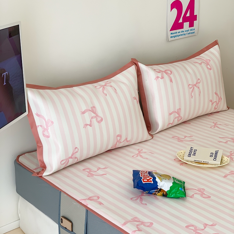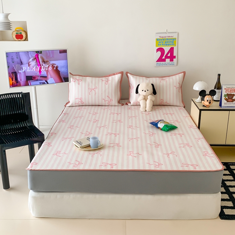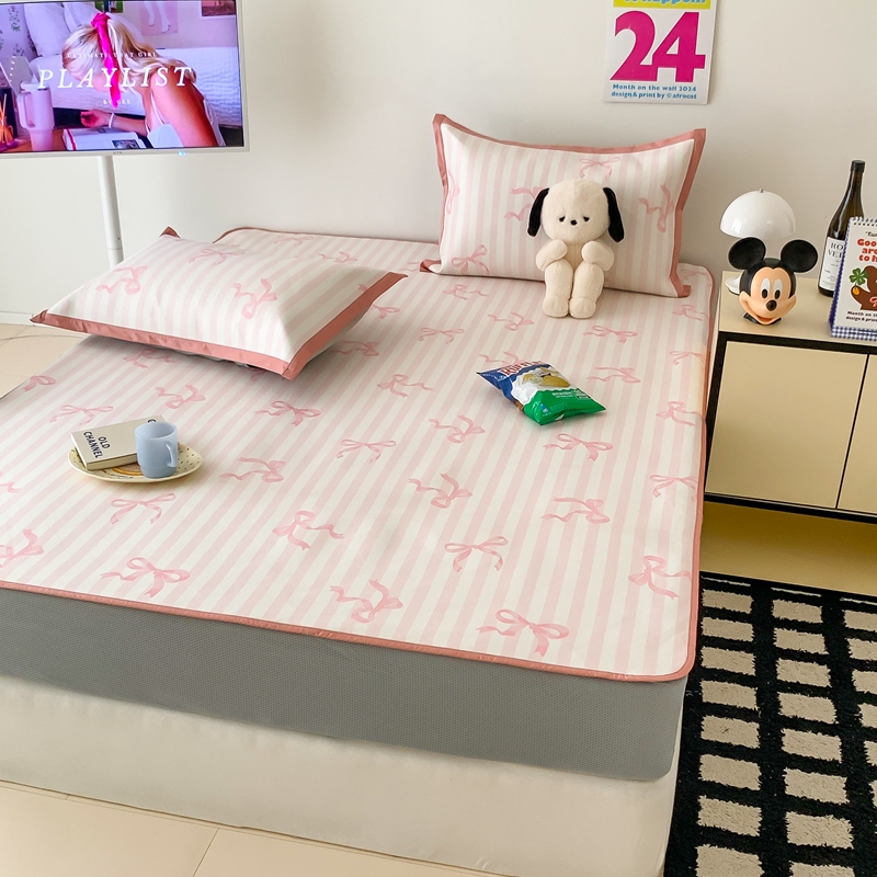 昔可家纺 2024新款冰藤席床笠款--卡通系列 条纹丝带蝴蝶结