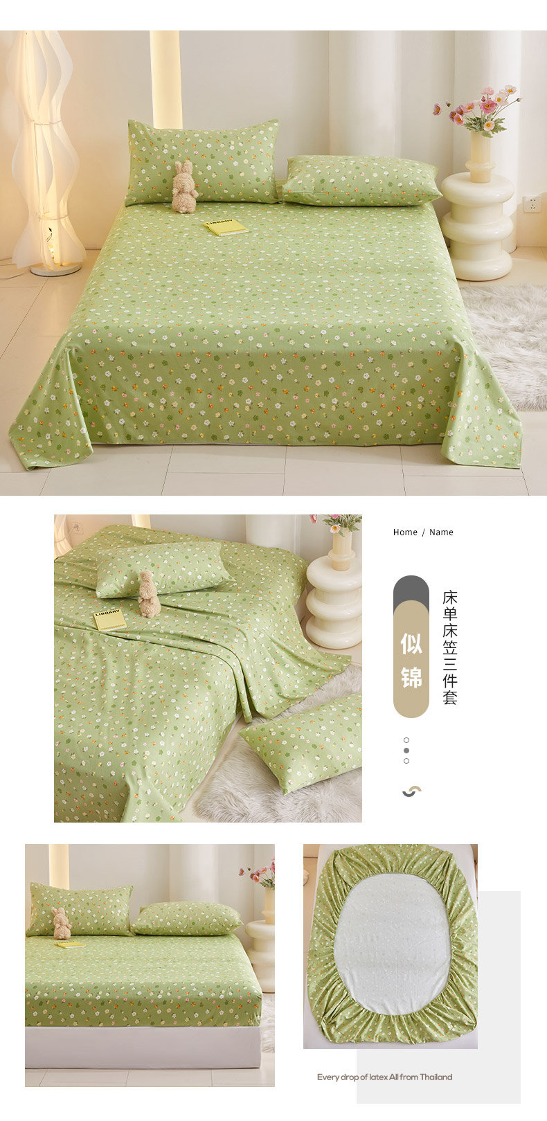 怡家居 2024新款A类老粗布枕套床单床笠单品组合三件套 似锦
