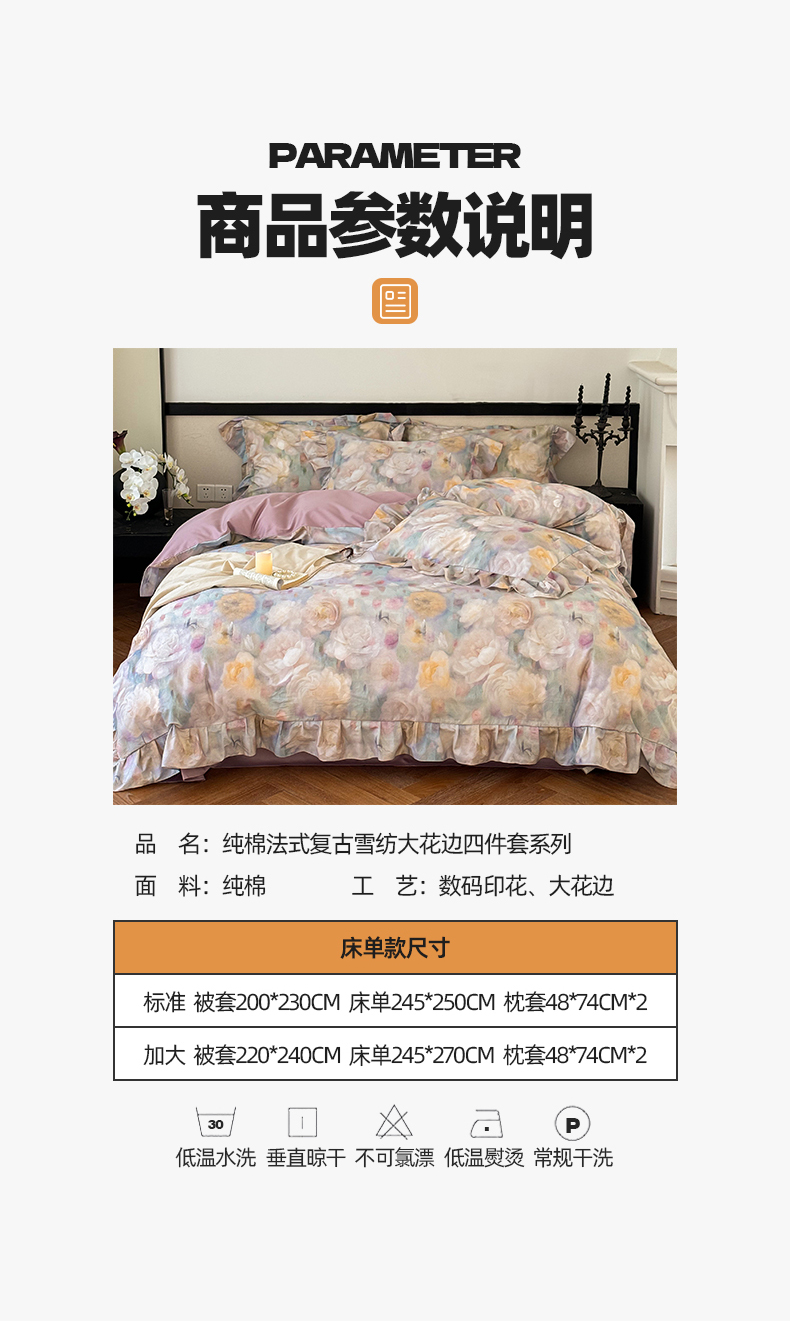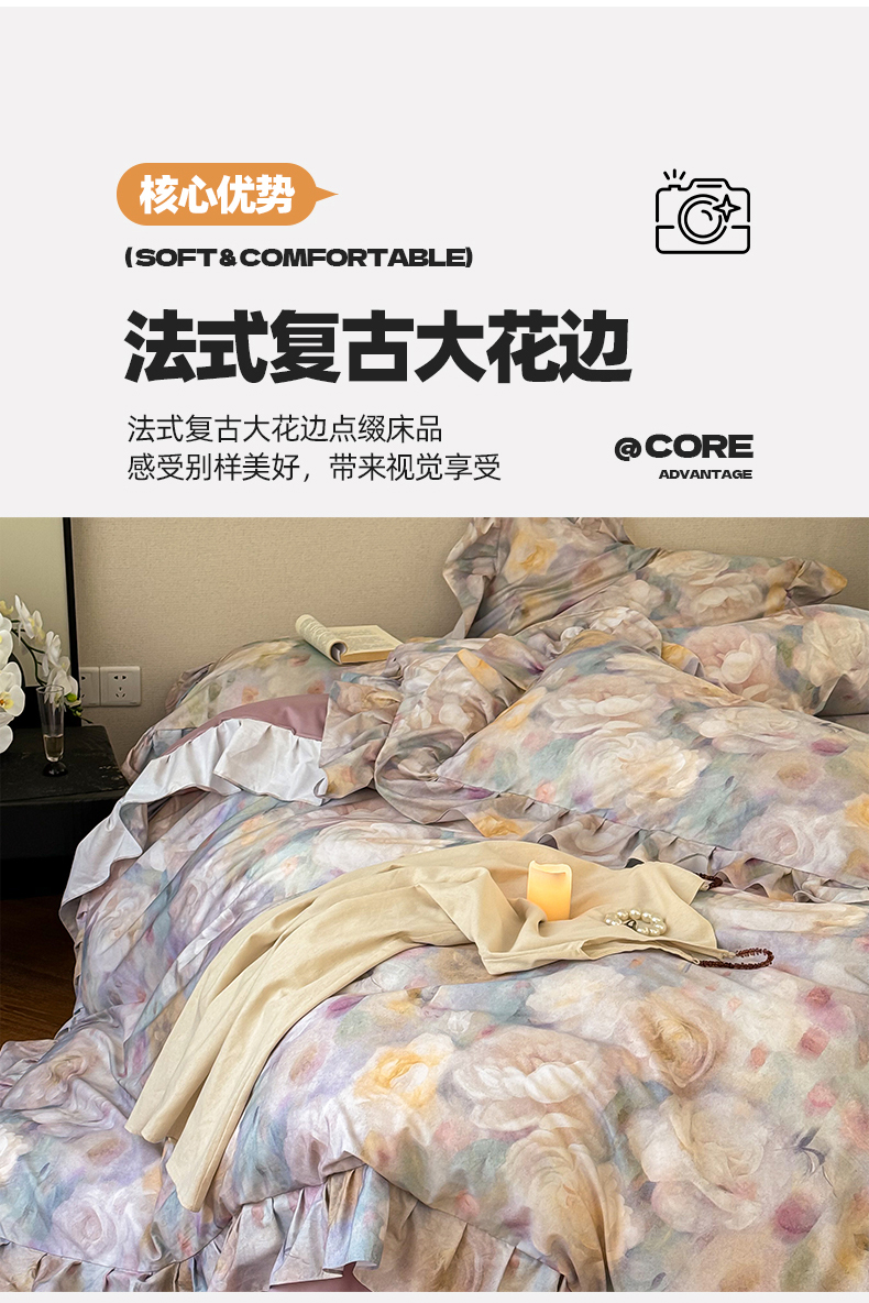 商品名称:窝米 2024春夏13376法式复古大花边数码款四件套系列 落梅-紫