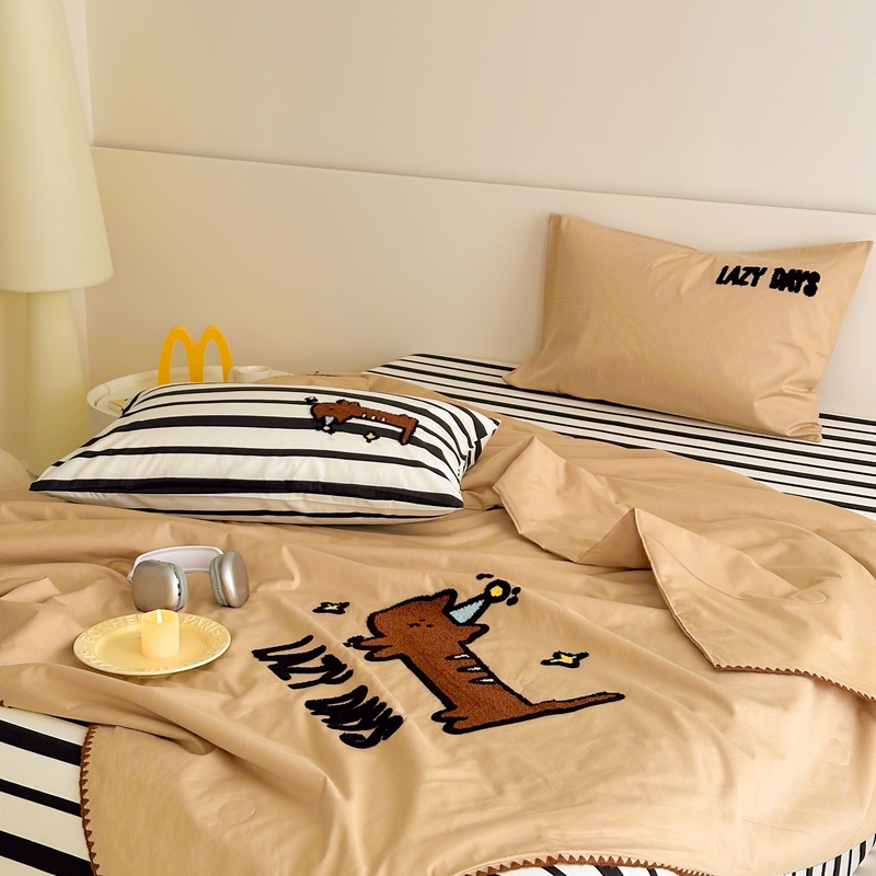 商品名称:珺柔家纺 2024新款毛巾绣三角针夏被四件套 顽皮喵喵