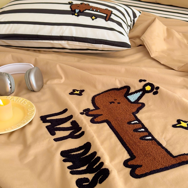 (总)珺柔家纺 2025新款全棉磨毛绣花四件套,风车小熊,海盐雪纳瑞,黑白熊猫,咖啡店小狗,腊肠三小只,萌神小喵,纽扣小熊,苹果小熊-咖,苹果小熊-蓝,夏日时光,小恶魔