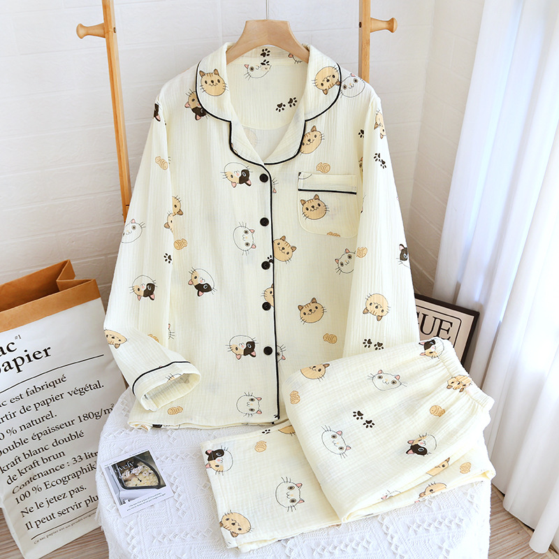 (总)洛兰沙家居馆 2024新款秋冬季清新款睡衣女三层夹棉珊瑚绒加厚保暖两件套女士可外穿加绒家居服,白色