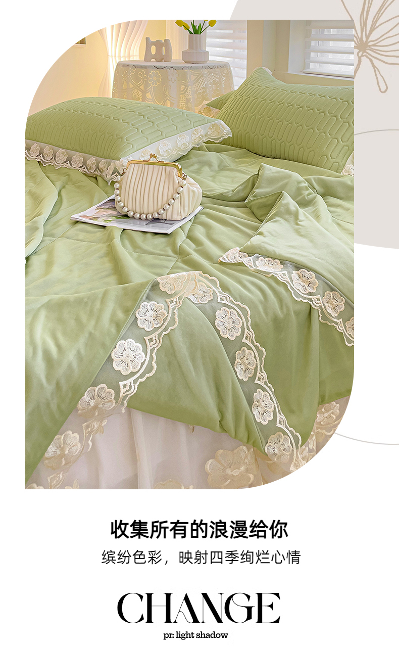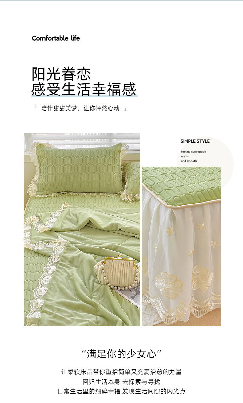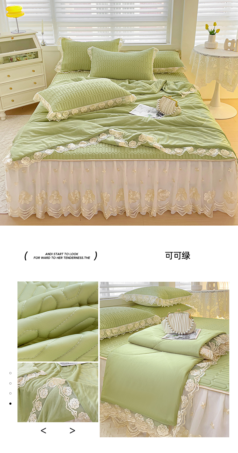 当前位置: 91家纺网 > 商品网购 > 床上用品 > 凉席 > 其他凉席 > 米莱家纺 2024新款蕾丝绣花凉席三件套 可可绿