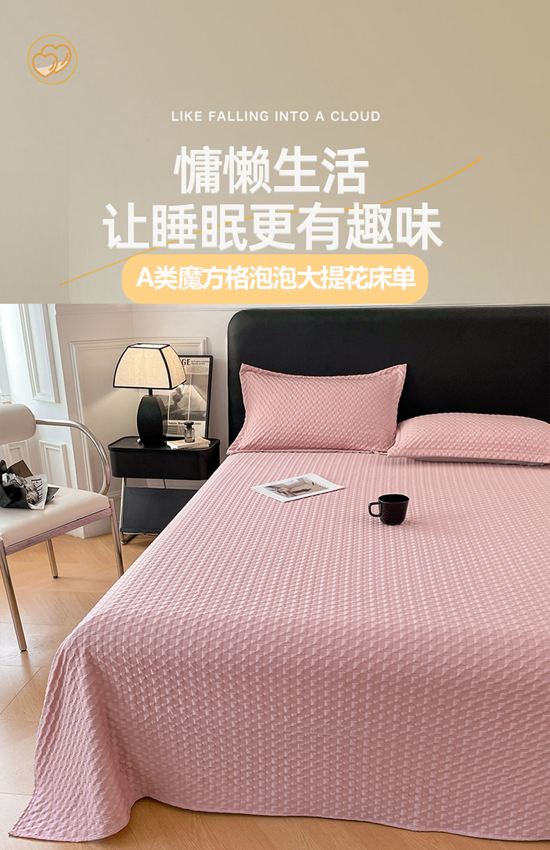 (总)梦舒羽 2025新款魔方格泡泡大提花床单华夫格床垫保护套床护垫