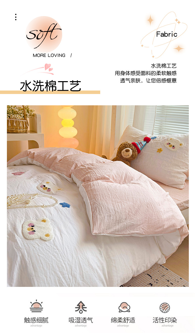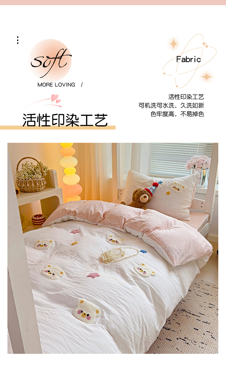 (总)韩巢家纺 2025新款水洗棉大花边被套四件套直播热销款学生宿舍被罩床单三件套(提供卖家秀),春日与玫瑰【大花边款】,繁花似梦【大花边款】,花时宇间【大花边款】,灰蒙小狗【大花边款】,久期诗朵-黄【大花边款】,可可腊肠犬【大花边款】,奶油樱桃【大花边款】,软糖猫【大花边款】,甜樱恋曲【大花边款】,温暖粉心【大花边款】,小花野-紫【大花边款】,小熊冰淇淋【大花边款】,星梦蝶结【大花边款】,幸运可爱兔【大花边款】,摘樱桃的小熊【大花边款】