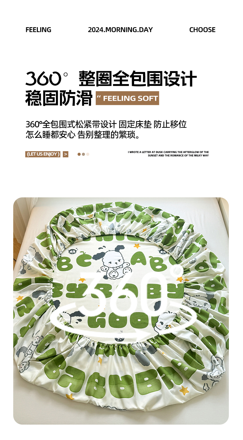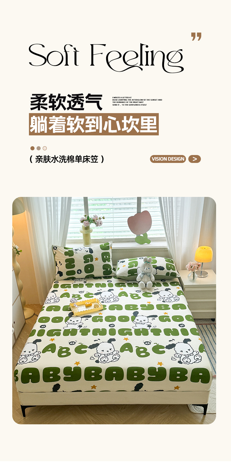 妖妖家纺 2024新款超柔软糯亲肤水洗棉单床笠 字母狗