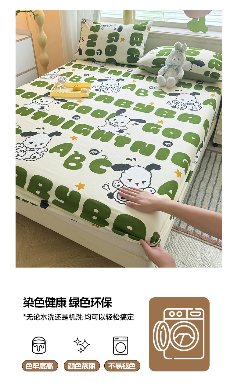 商品名称:妖妖家纺 2024新款超柔软糯亲肤水洗棉单床笠 字母狗
