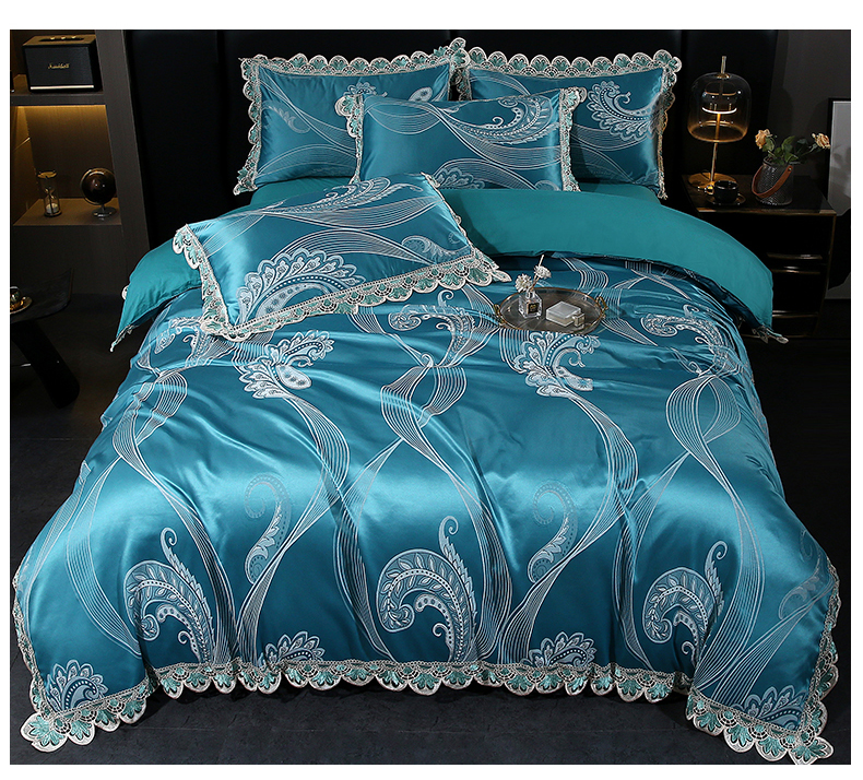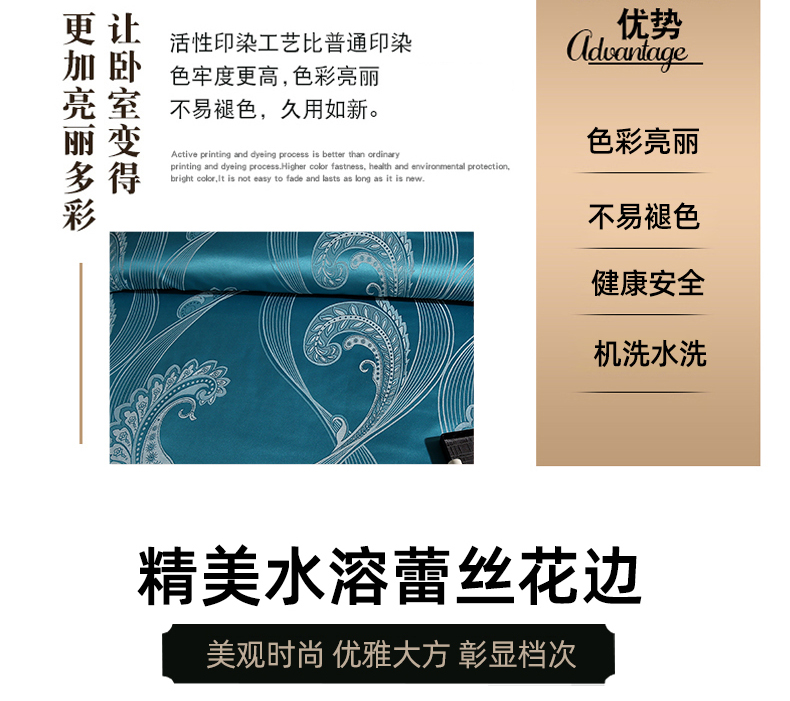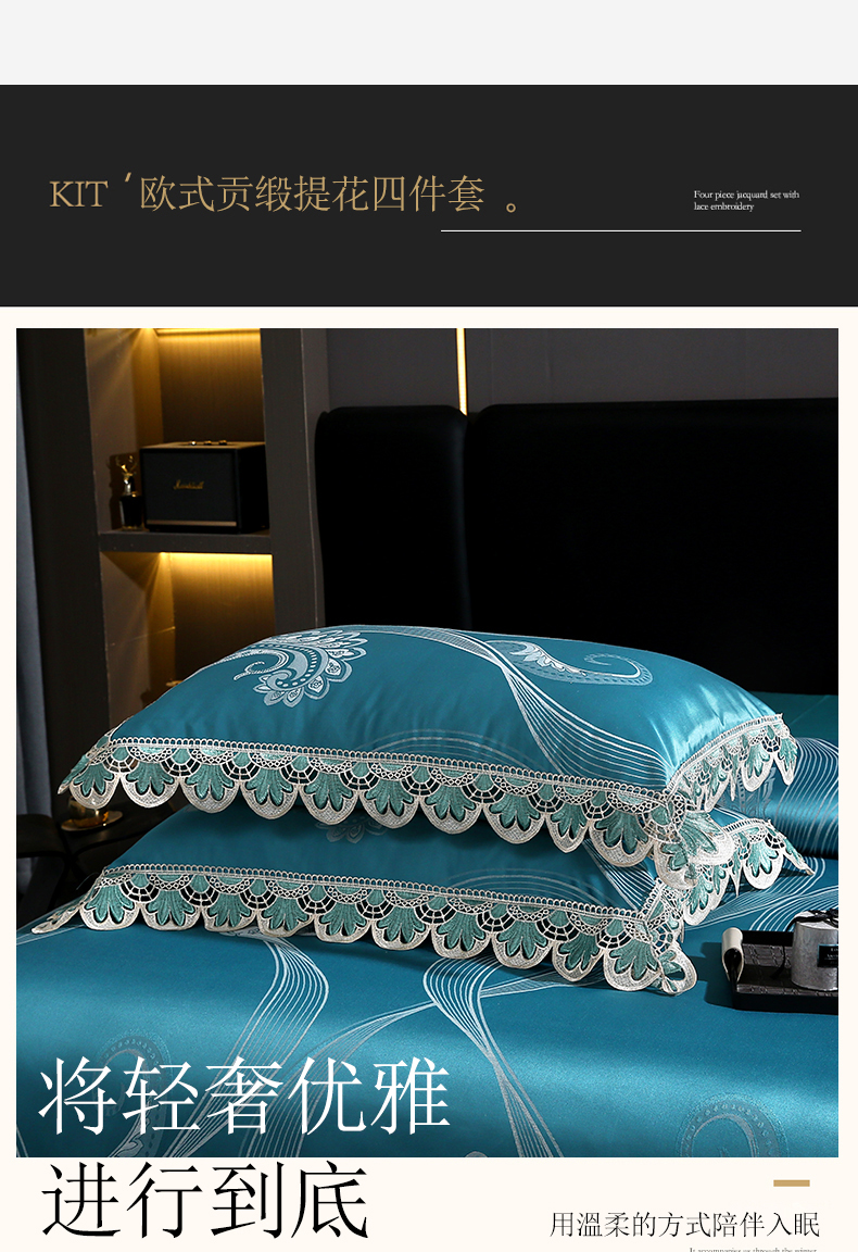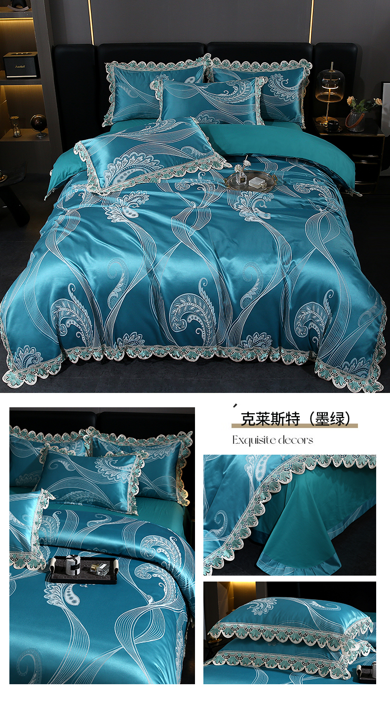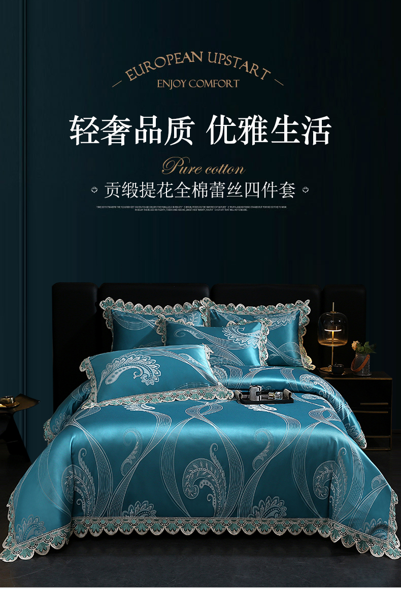 提花大世界 2025新款全棉贡缎水溶天丝提花四件套 克莱斯特(墨绿)