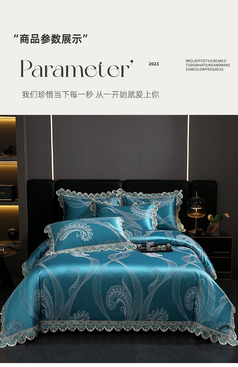 商品名称:提花大世界 2025新款全棉贡缎水溶天丝提花四件套 克莱斯特(墨绿)