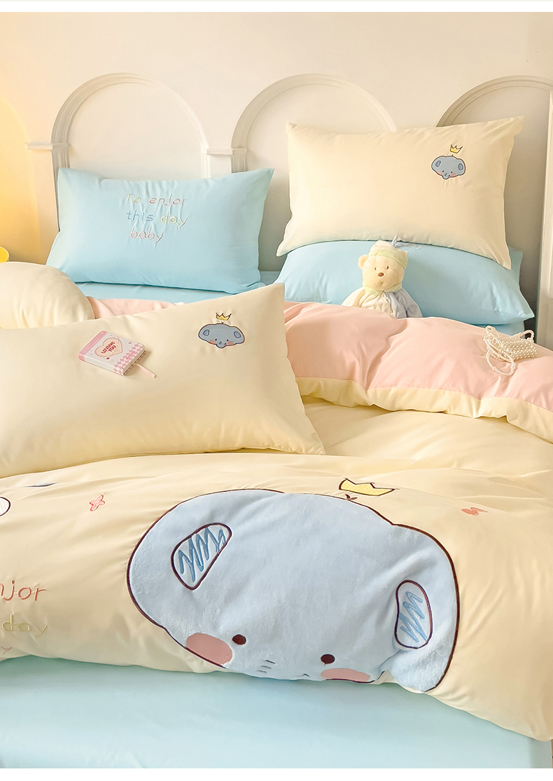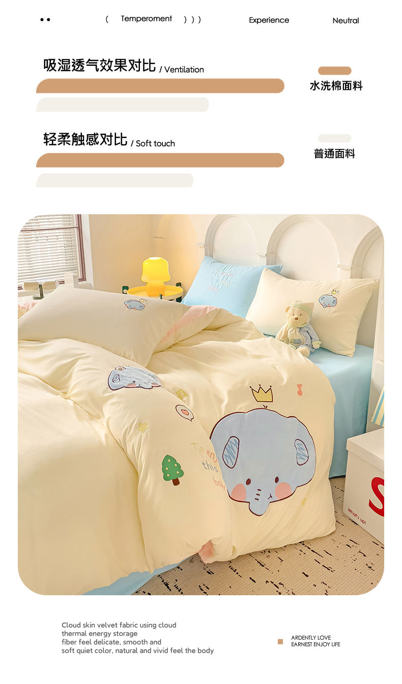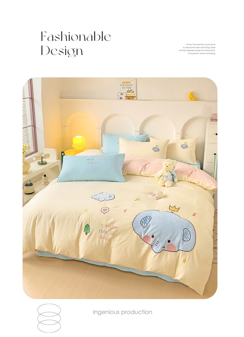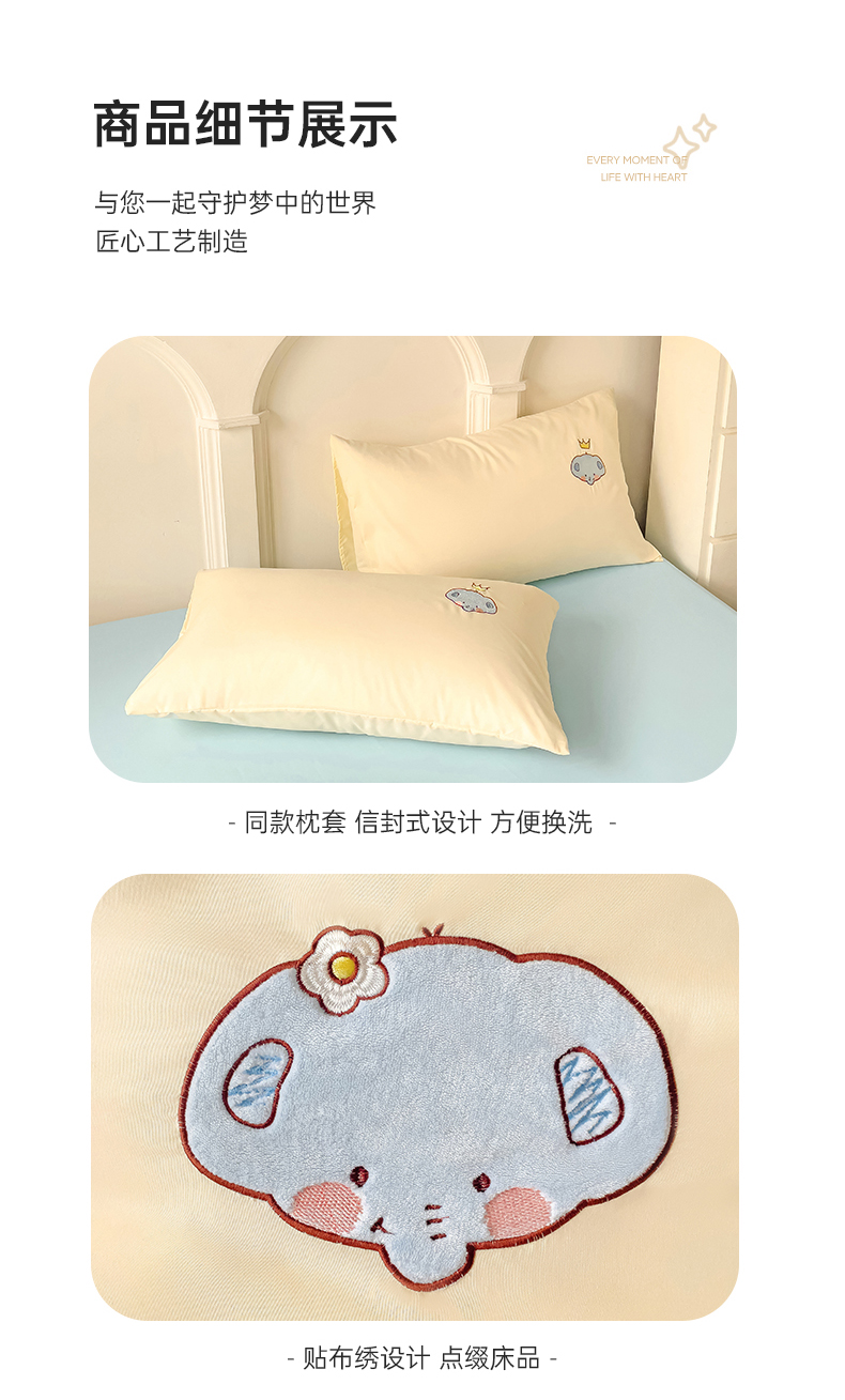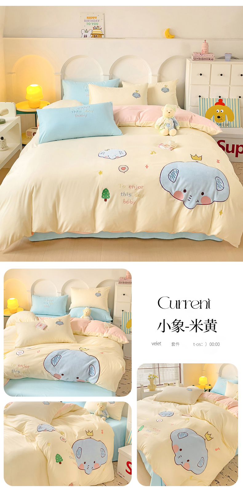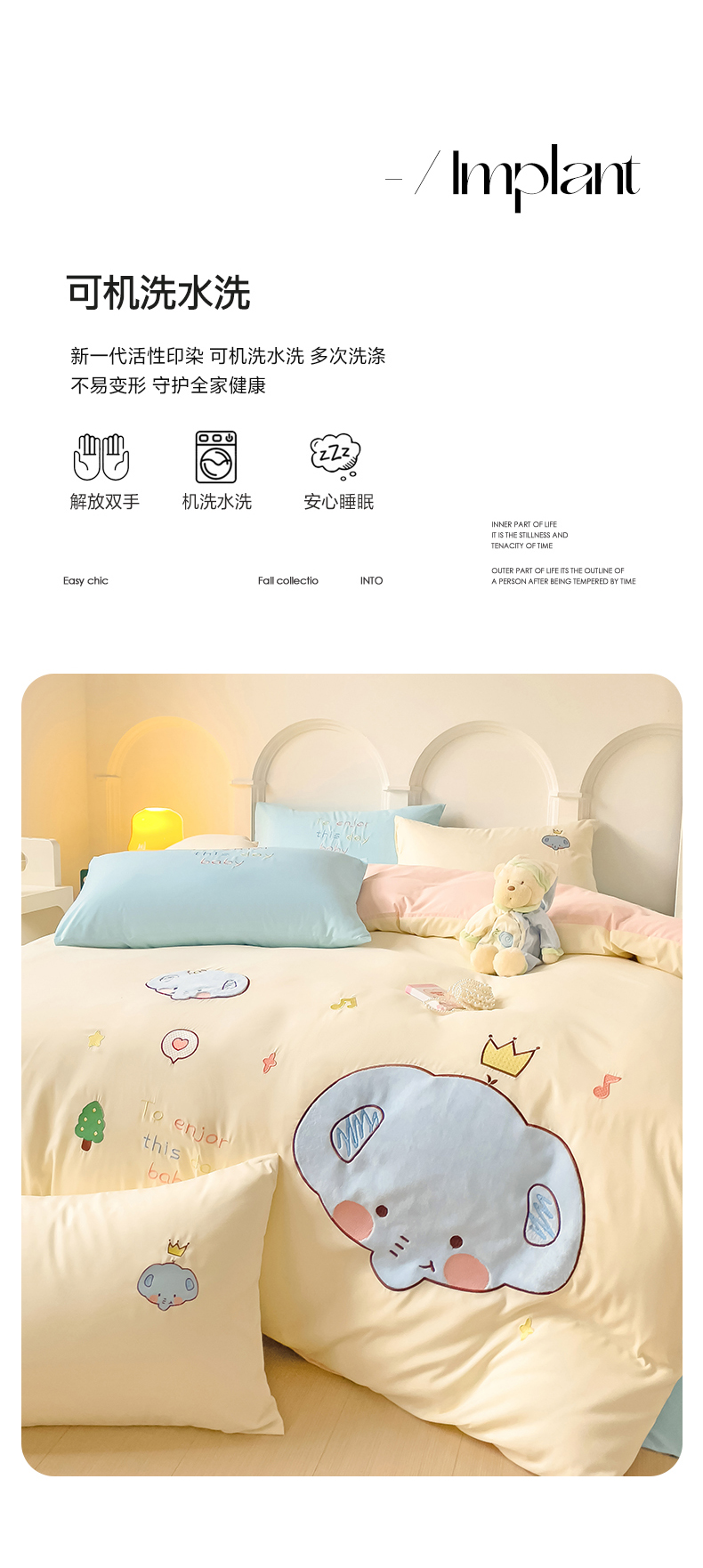 当前位置: 91家纺网 > 商品网购 > 床品套件 > 四件套 > 水洗棉四件套 > 我心家纺 2024新款水洗棉贴布绣四件套-小象 小象-米黄
