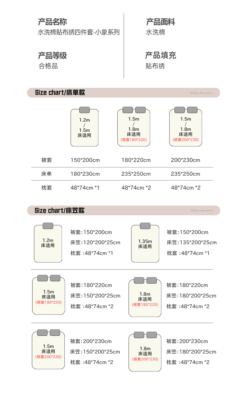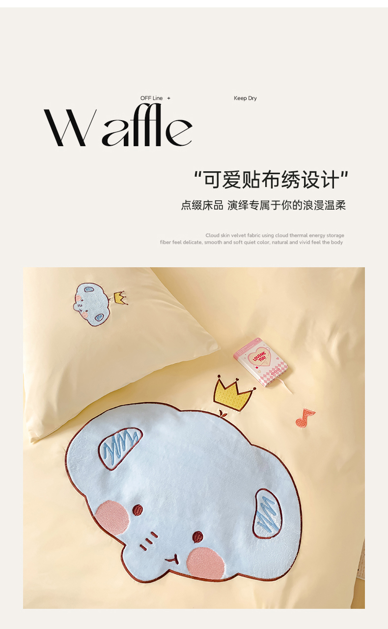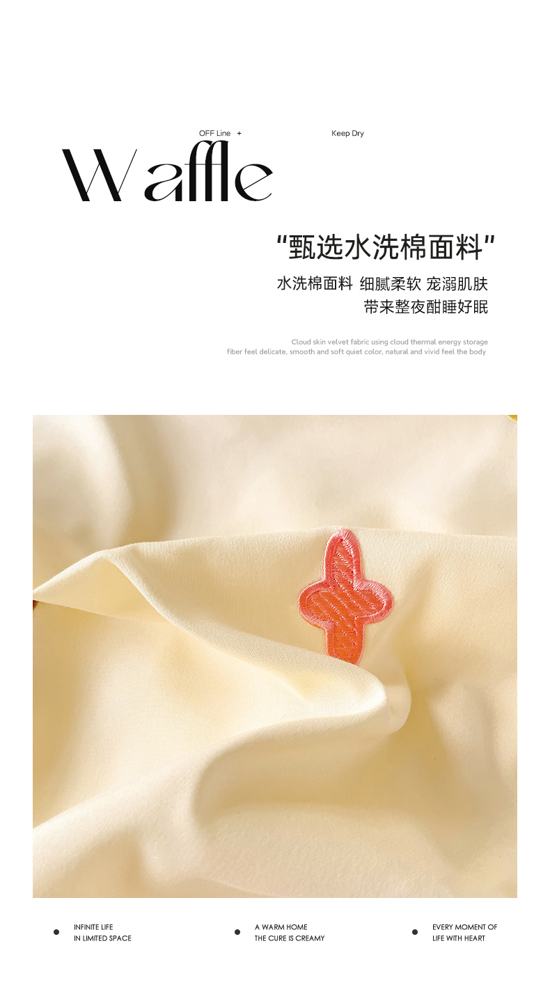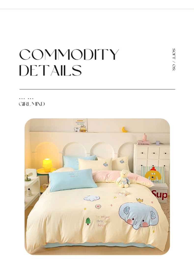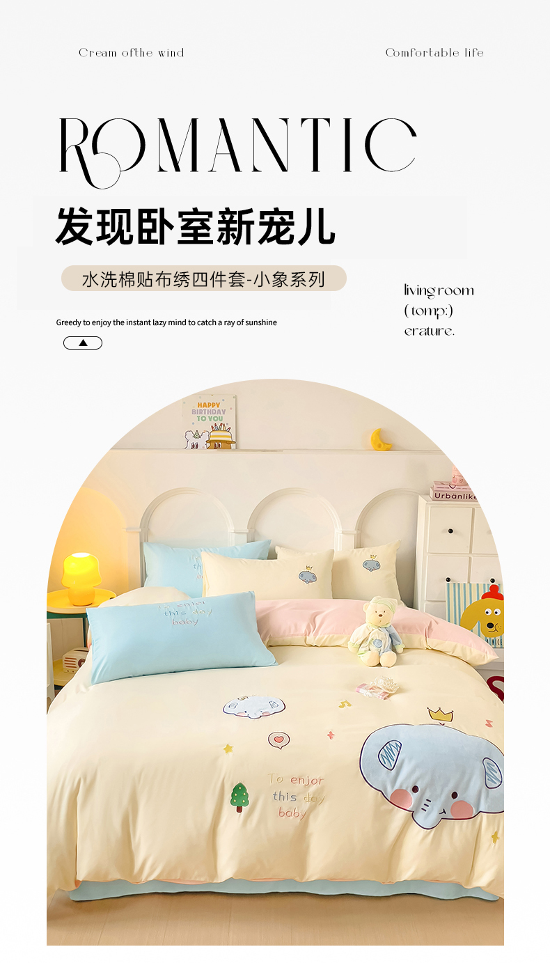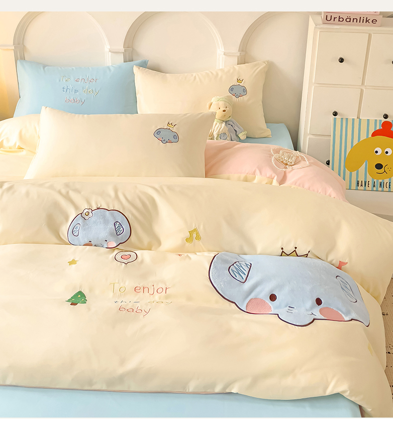 当前位置: 91家纺网 > 商品网购 > 床品套件 > 四件套 > 水洗棉四件套 > 我心家纺 2024新款水洗棉贴布绣四件套-小象 小象-米黄