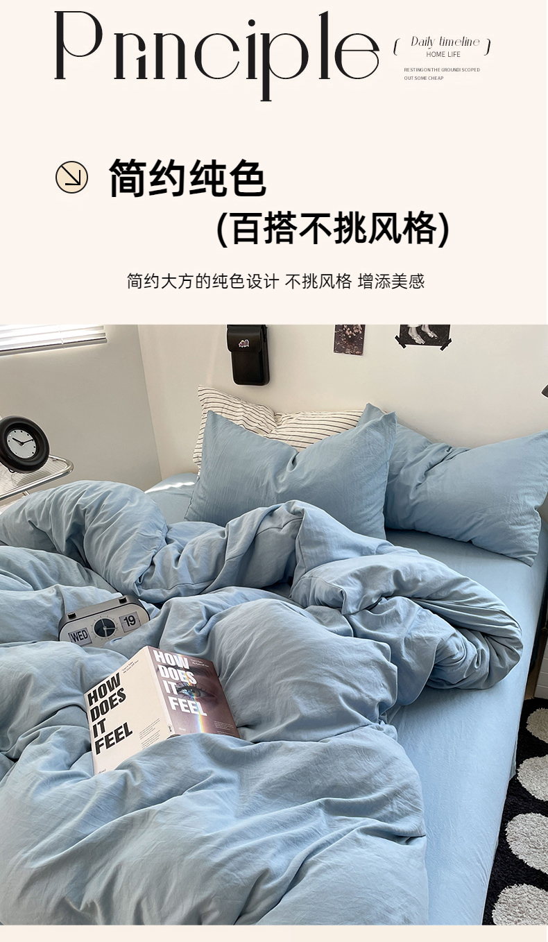 当前位置: 91家纺网 > 商品网购 > 床品套件 > 四件套 > 水洗棉四件套 > 卡迪熊家纺 2024新款ins风超柔褶皱亲肤磨毛水洗m四件套纯色系列-风格2 奶油蓝