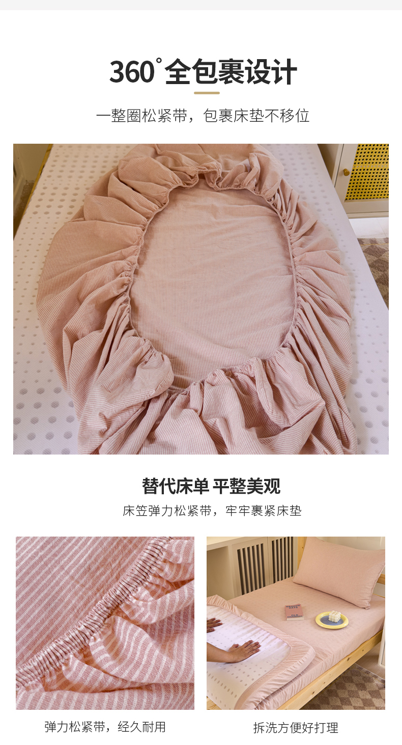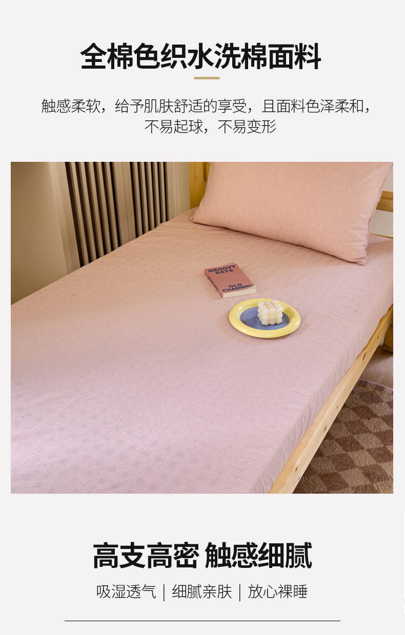 金丝鸟家纺 2024新款A类全棉色织水洗棉单床笠系列(学生床) 粉细条
