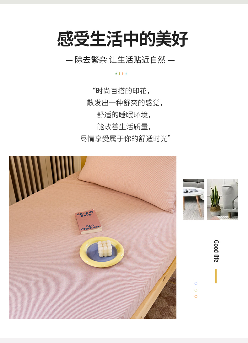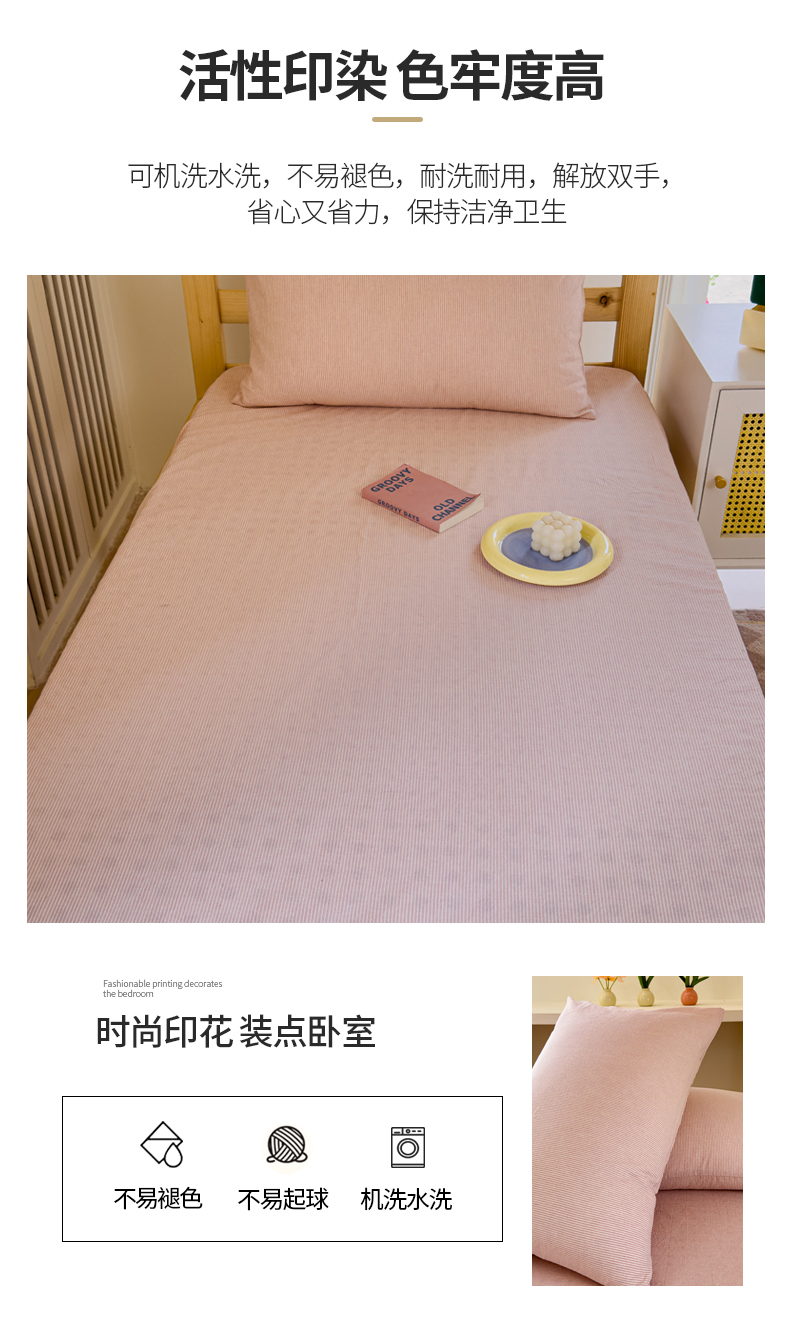 • 91家纺网 家纺一手货源 找家纺 金丝鸟家纺 2024新款A类全棉色织水洗棉单床笠系列(学生床) 粉细条