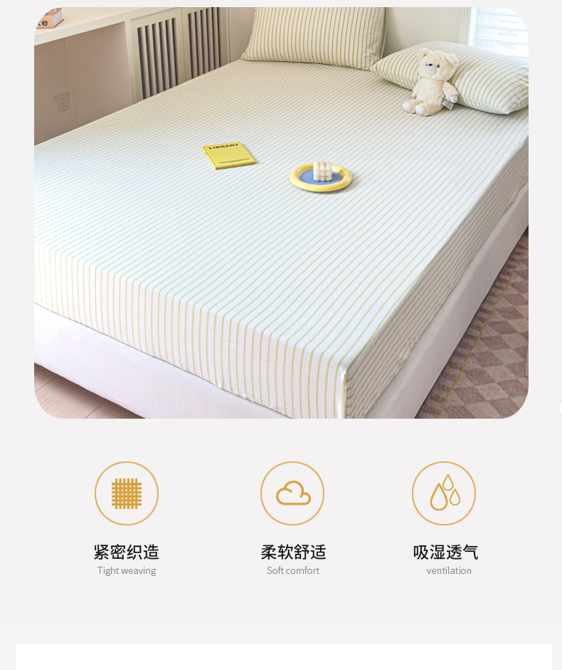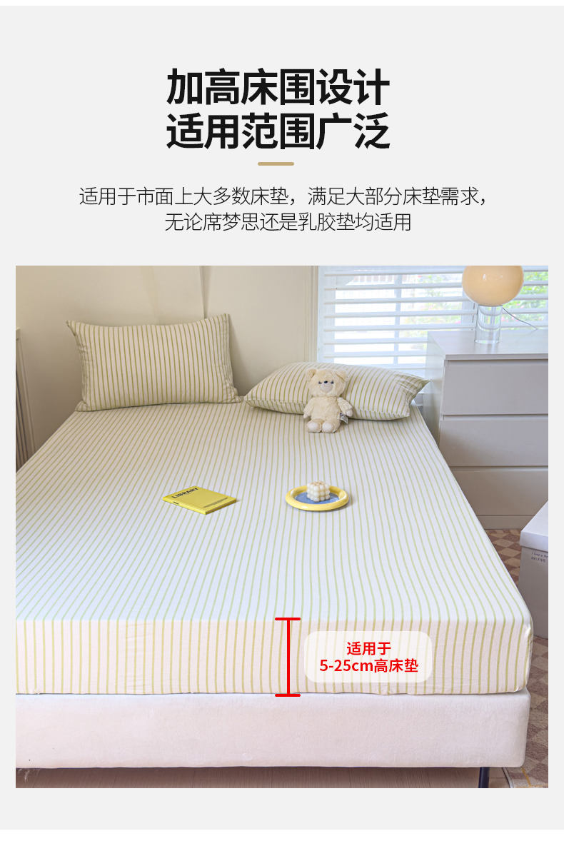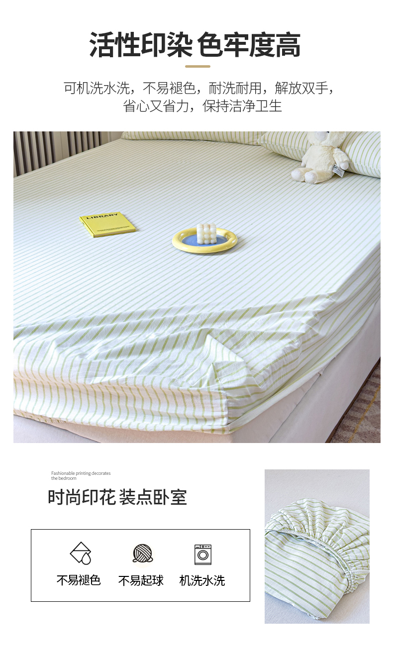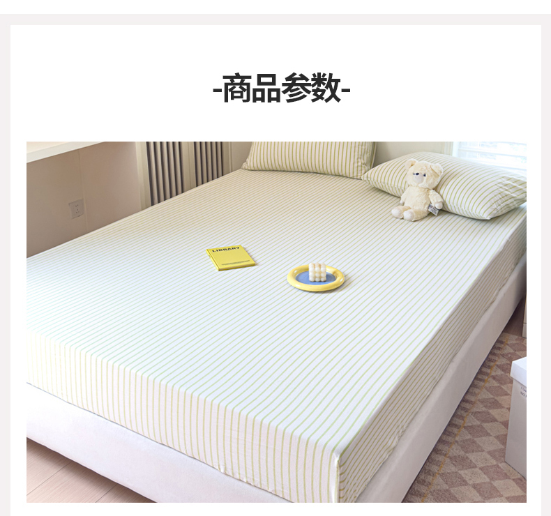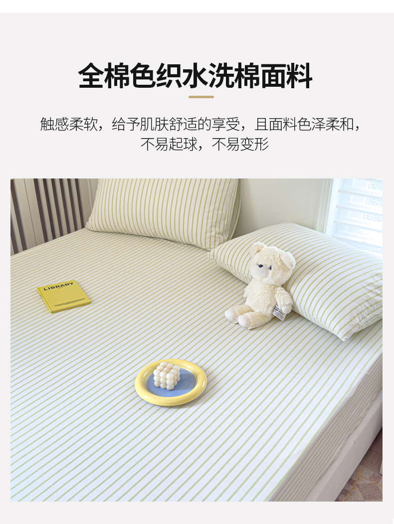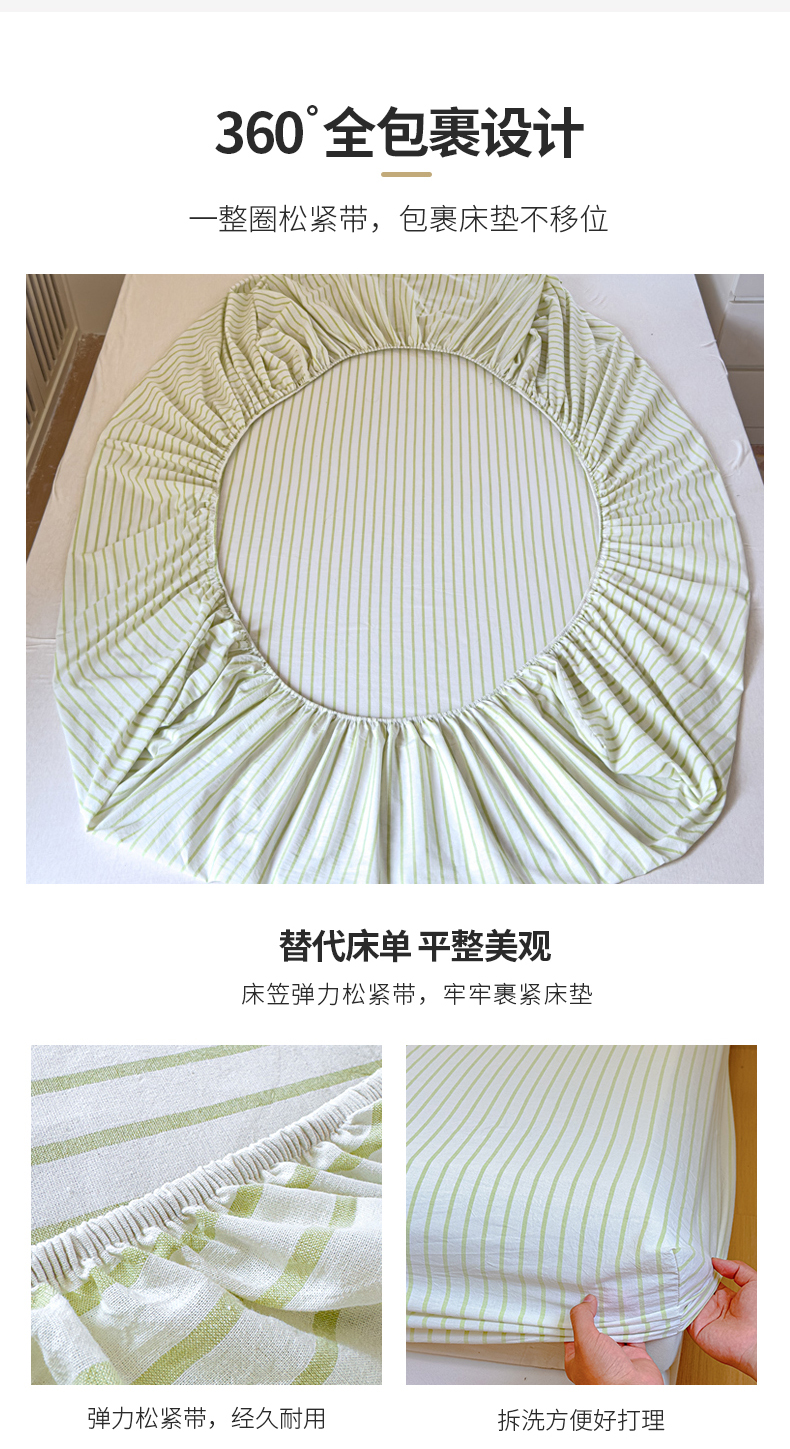 金丝鸟家纺 2024新款A类全棉色织水洗棉床笠系列 果绿中条