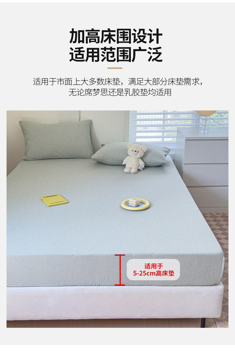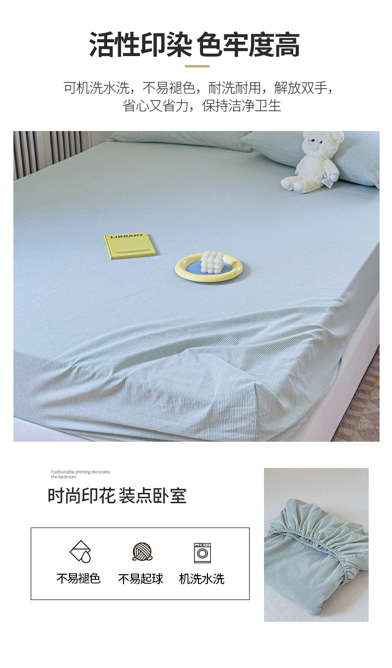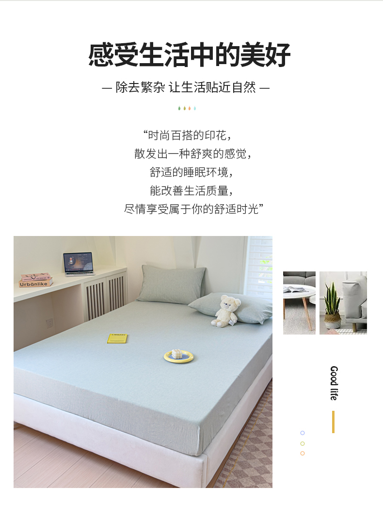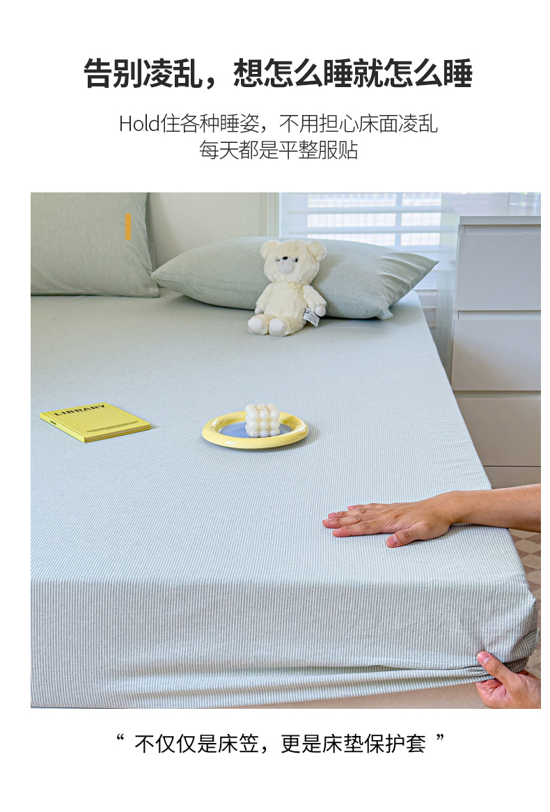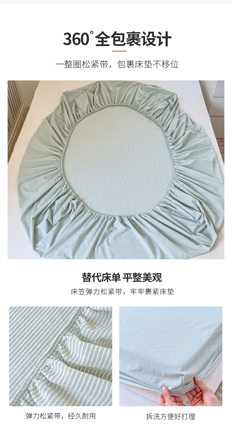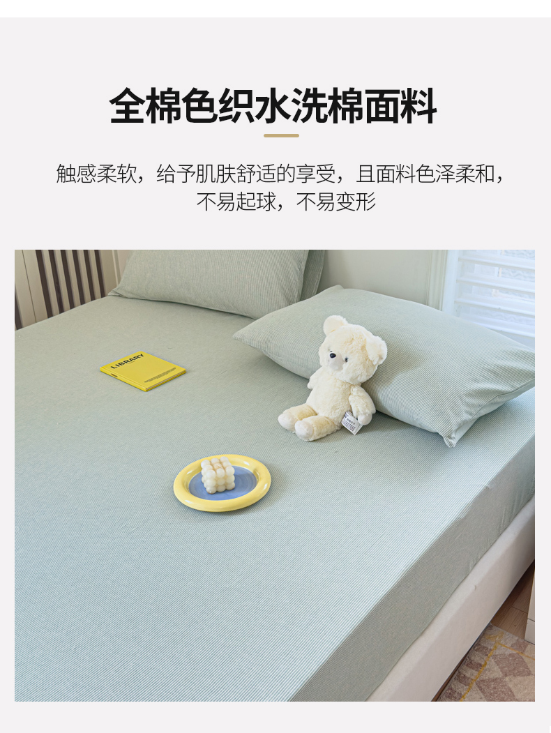 金丝鸟家纺 2024新款A类全棉色织水洗棉床笠系列 绿细条