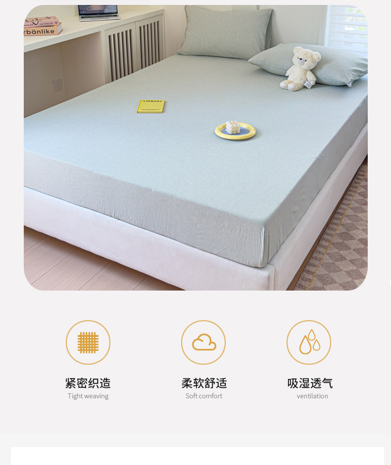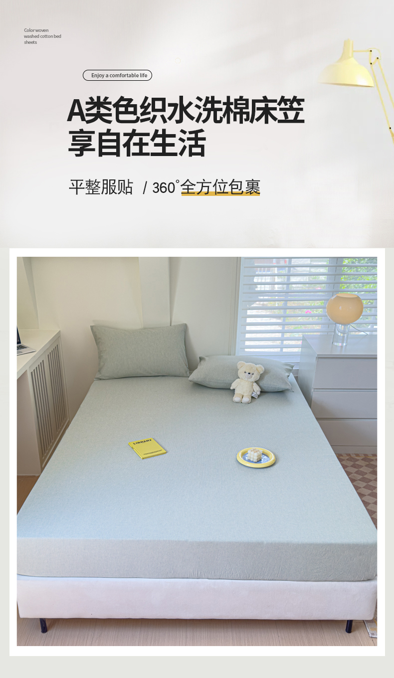 • 91家纺网 家纺一手货源 找家纺 金丝鸟家纺 2024新款A类全棉色织水洗棉床笠系列 绿细条