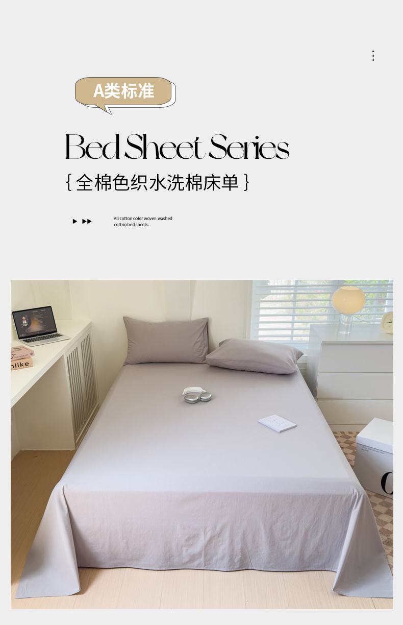 • 91家纺网 家纺一手货源 找家纺 金丝鸟家纺 2024新款A类全棉色织水洗棉单床单系列 浅灰