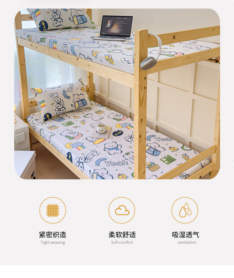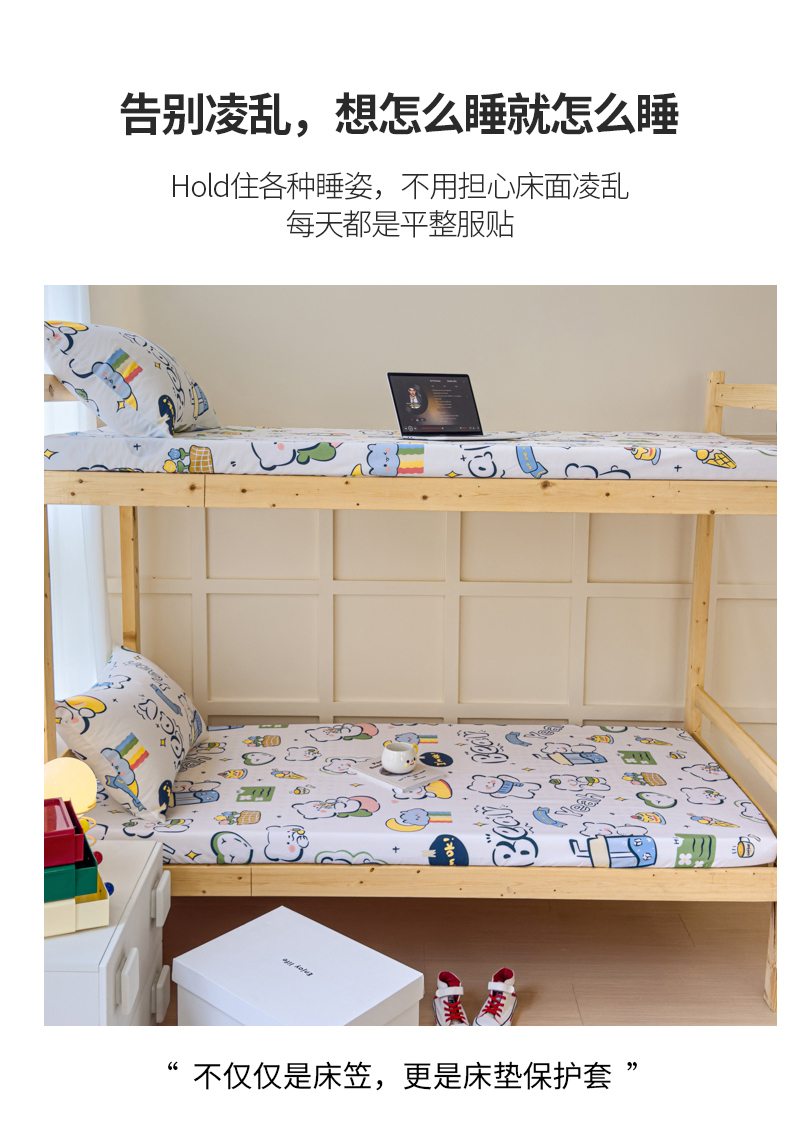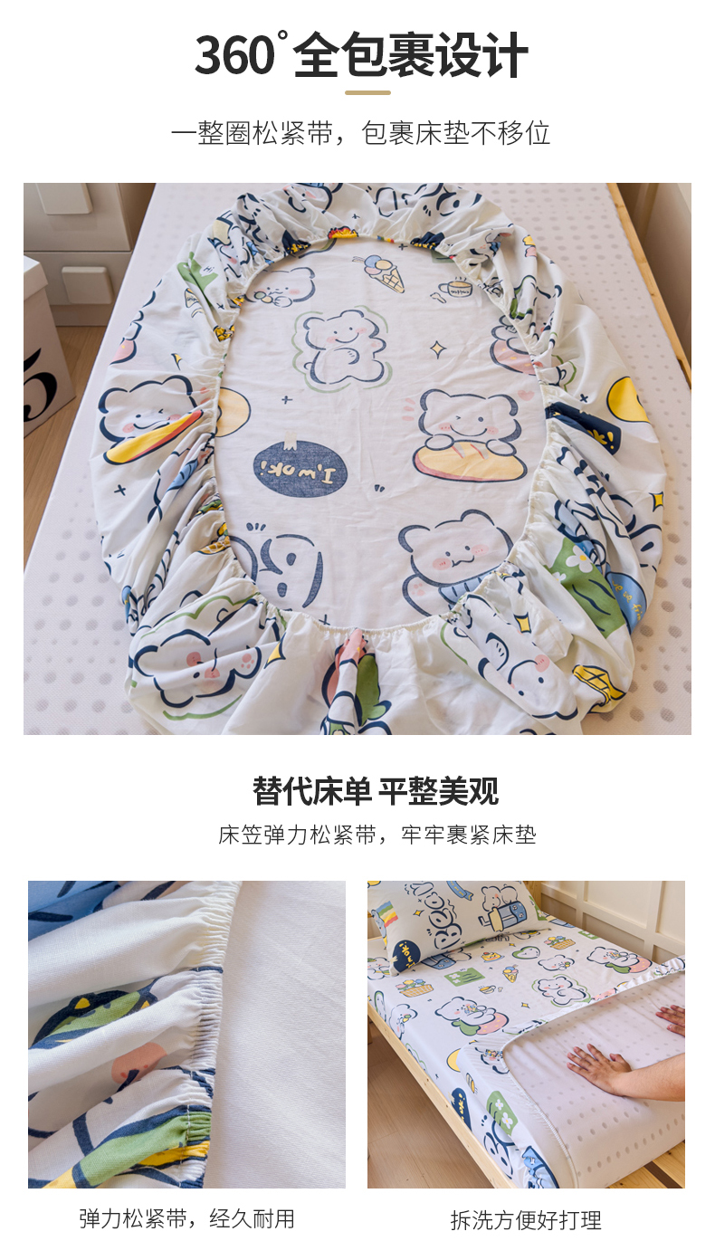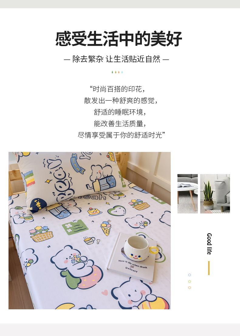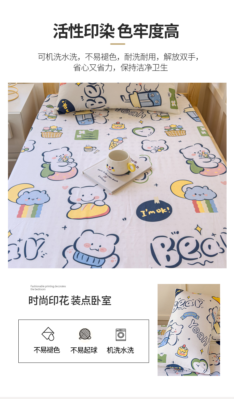 • 91家纺网 家纺一手货源 找家纺 金丝鸟家纺 2024新款全棉小清新印花单床笠系列(学生床) 快乐小熊
