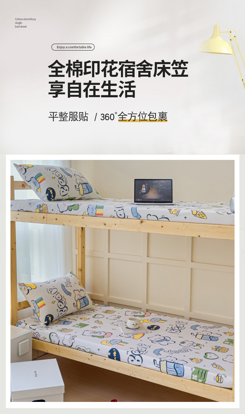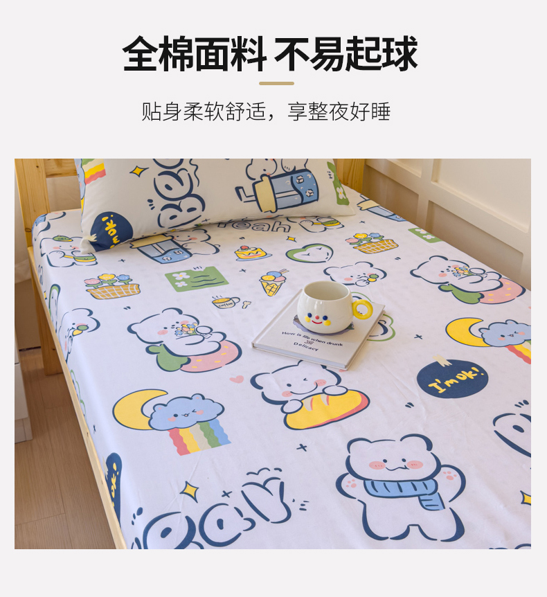 金丝鸟家纺 2024新款全棉小清新印花单床笠系列(学生床) 快乐小熊